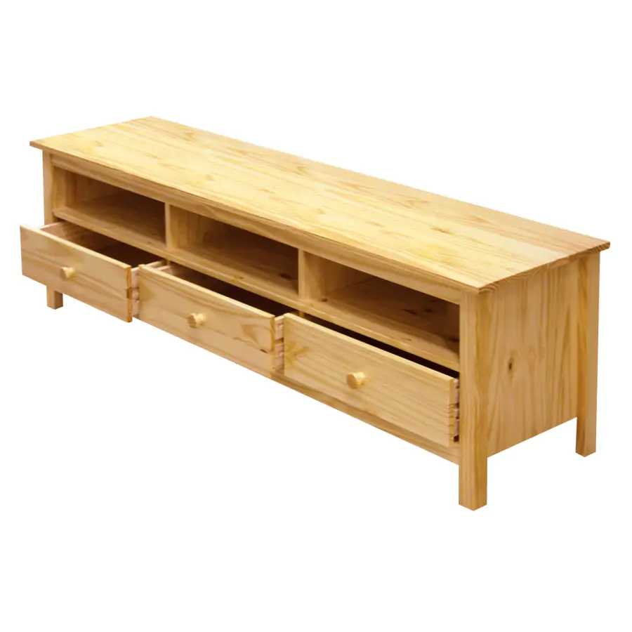 Provedení: Masivní televizní stolek TORINO je vyroben z lakované masivní borovice. Stolek disponuje třemi zásuvkami, nad kterými najdeme další úložný prostor. Zásuvky jsou opatřeny kovovými pojezdy. Tento televizní stolek poskytuje dostatek úložného prostoru pro vaše přehrávače. Zboží je dodáváno v demontu.