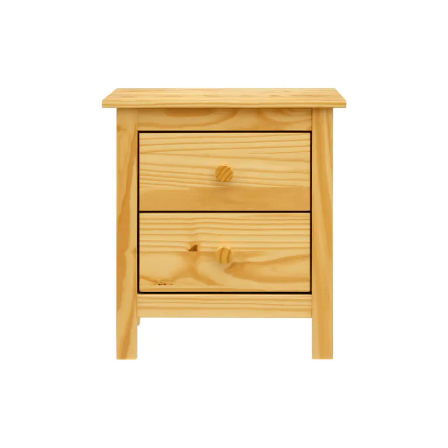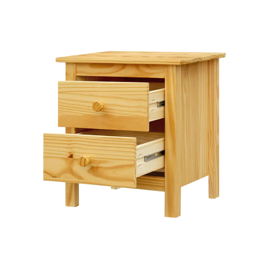 Provedení: Noční stolek je vyroben z lakovaného masivního borovicového dřeva. Tento stolek disponuje dvěma praktickými zásuvkami s kovovými pojezdy. Plochu nad zásuvkami lze využít k odložení právě rozečtené knihy apod. Dodáváno v demontu.