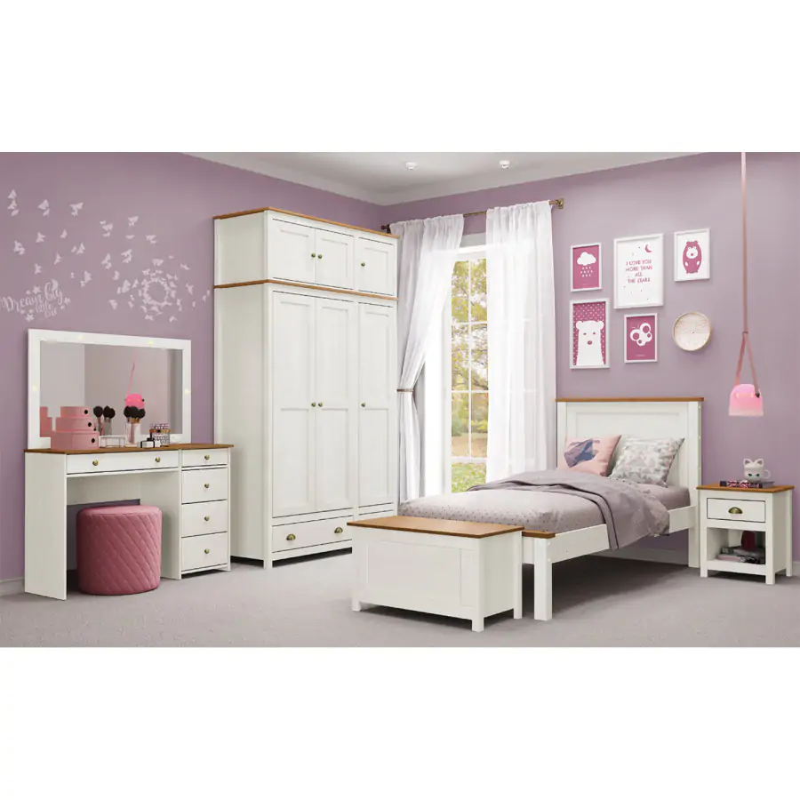 Provedení:Noční stolek TOPAZIO je vyroben z masivního borovicového dřeva v barevném provedení bílý/hnědý lak. Noční stolek má praktickou zásuvku a odkládací prostor na knihy apod. Zásuvka je opatřena kovovými pojezdy a kovovou úchytkou. Dodáváno v demontu.