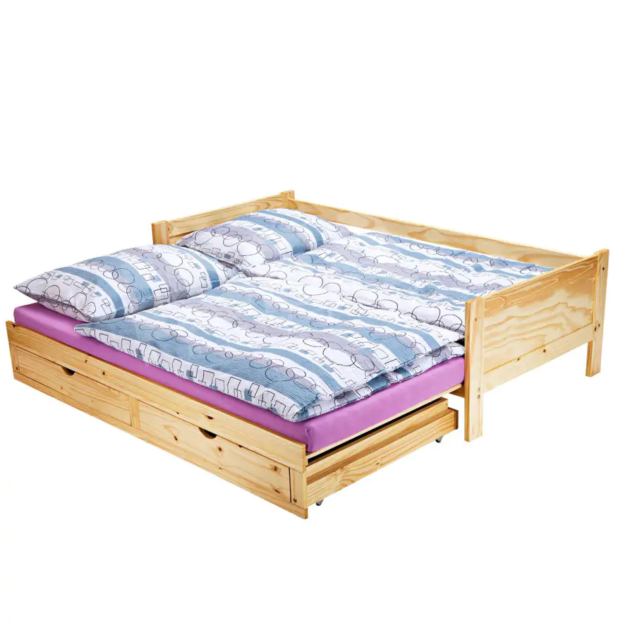 Provedení:Moderní postel s výsuvnou přistýlkou je vyrobena z lakovaného borovicového masivu v přírodní barvě dřeva. Výška sedu této postele je 38 cm. Horní lůžko v případě potřeby doplní dolní lůžko 90x200 cm. Postel je dodávána včetně roštů, bez matrací. Doporučujeme na vrchní lůžko koupit matraci o rozměru 90x200 cm, na přistýlku možnost dokoupit matraci 90x200 cm. V naší nabídce najdete široký výběr matrací. Dodáváno v demontu.