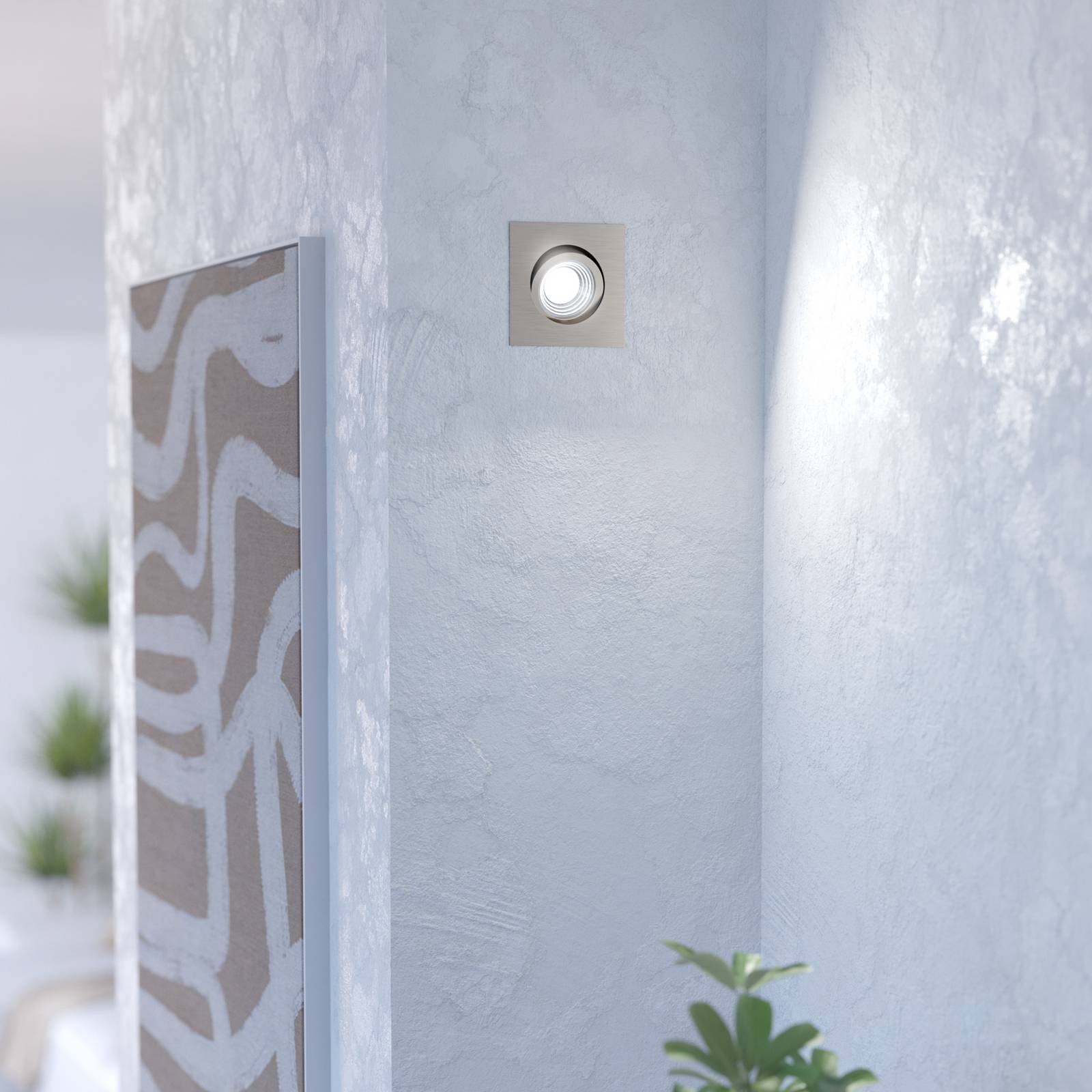 Čtvercový LED zapuštěný bodový reflektor Saliceto s otočnou světelnou hlavou Zapuštěná bodová světla jsou velmi dobrou volbou pro všeobecné osvětlení v nejrůznějších místnostech. Hodí se téměř do jakéhokoli stylu vybavení a jsou stěží nápadné. LED zapuštěné bodové světlo Saliceto lze nastavit ve svém sklonu ve čtvercovém držáku, aby bylo možné variabilně umístit světelný paprsek. Stmívatelné LED reflektory lze také použít k nahrazení stávajících halogenových reflektorů. Jeho jas lze regulovat pomocí vhodného stmívače a díky integrovanému LED ovladači připojit přímo na 230V.