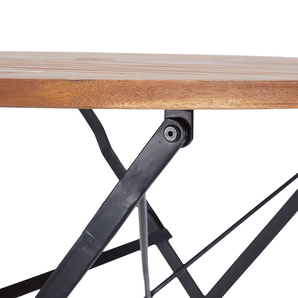 Rozměry: průměr 100 x V 75 cm Materiál: akáciové dřevo, železo Pokyny pro péči: Dřevěný povrch ošetřujte každých 6 měsíců speciálním olejem na dřevo. Další informace: Vyrobeno ze dřeva s certifikátem FSC®. FSC® C144324. Flexibilní zahradní nábytek, jako je stůl PARKLIFE pro 4 osoby, vyrobený ze dřeva a železa, je jednoduše bezkonkurenční. Ať už chcete trávit rána a odpoledne na slunci, potřebujete místo na hru kroketu, nebo máte kůlnu či garáž menší než hangár pro letadlo – tento stůl Vám poskytne vše, co…