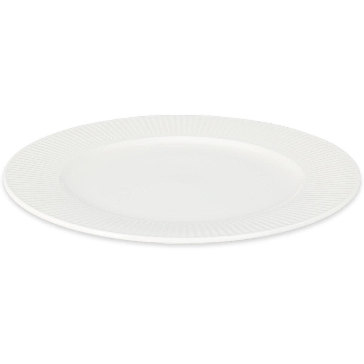 Sada 6 porcelánových mělkých talířů Linie o průměru 27 cm je elegantní volbou pro každodenní stolování i slavnostní příležitosti. Talíře jsou vyrobené z kvalitního porcelánu typu New Bone China, který se vyznačuje pevností, odolností a jemným leskem. Jsou ideální pro podávání hlavního jídla, oběda i večeře.Krémové provedení doplňuje decentní reliéfní zdobení na okraji v podobě jemného žebrování, které celé sadě dodává nadčasový charakter. Díky svému univerzálnímu designu se talíře hodí do moderních i klasických domácností a skvěle se kombinují s dalšími prvky stolního nádobí. Jsou praktické a snadno se udržují – lze je mýt v myčce nádobí a používat v mikrovlnné troubě.Hlavní výhody produktu sada 6 mělkých talířů o průměru 27 cm kvalitní porcelán New Bone China s jemným leskem elegantní reliéfní žebrování na okraji stabilní a odolné, vhodné pro každodenní použití možnost mytí v myčce i použití v mikrovlnné trouběObsah balení 6× porcelánový mělký talíř Linie 27 cm