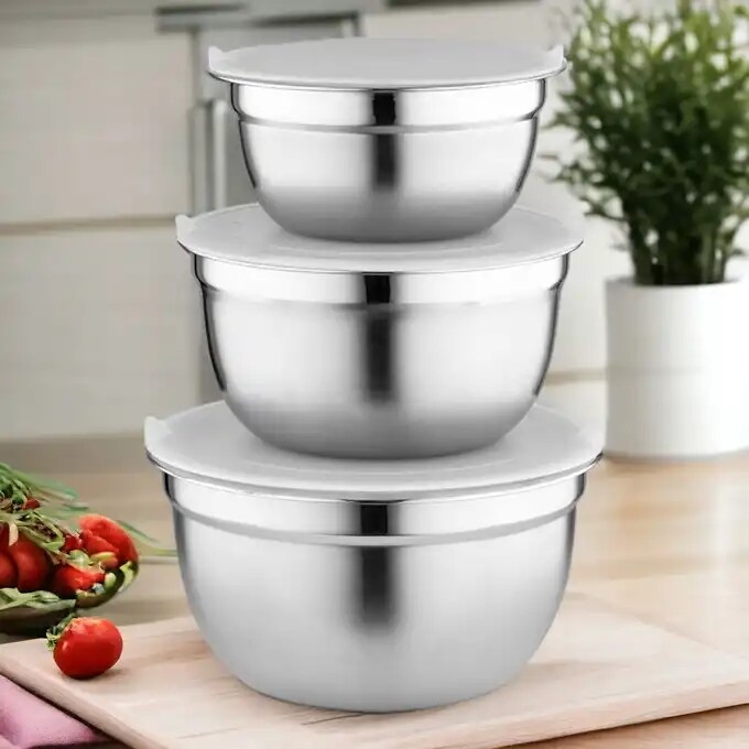 Florina Sada 3 nerezových misek s víky, stříbrná