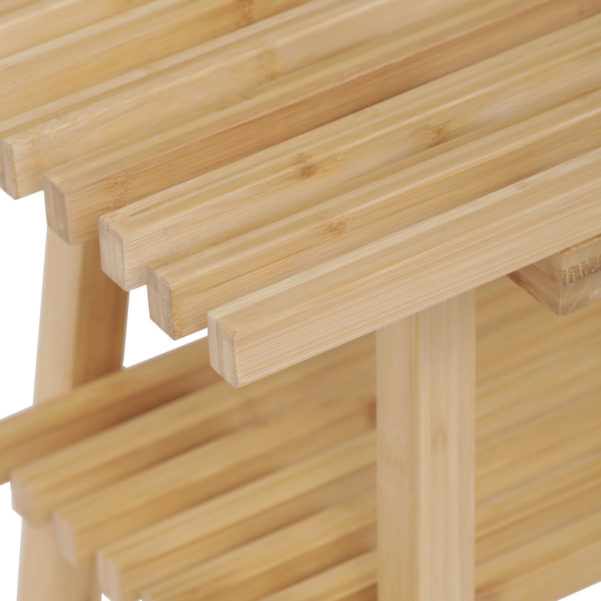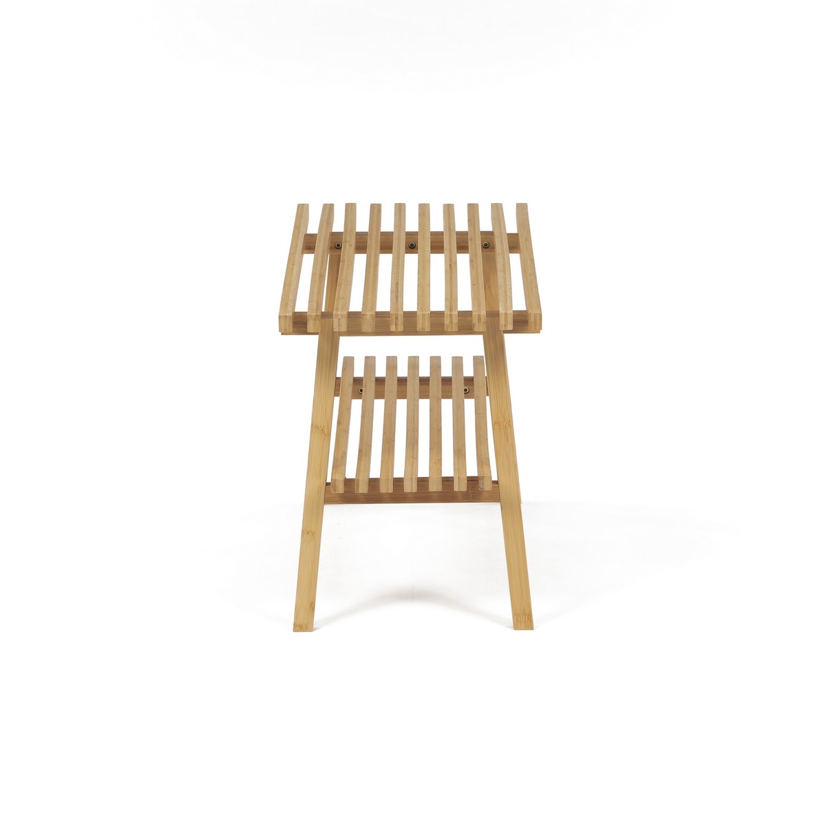 Botník z masivního bambusu v přírodním odstínu nabízí praktické a vzdušné řešení pro uskladnění obuvi. Jeho otevřená konstrukce s jednou policí umožňuje snadnou orientaci a rychlý přístup k botám, přičemž bambusové lamely zajišťují dostatečnou cirkulaci vzduchu. Stabilní nohy a pevné spojení jednotlivých částí podporují dlouhou životnost a odolnost proti běžnému zatížení. Díky přírodnímu vzhledu se botník hodí do různých interiérů, kde přináší příjemný přírodní akcent.