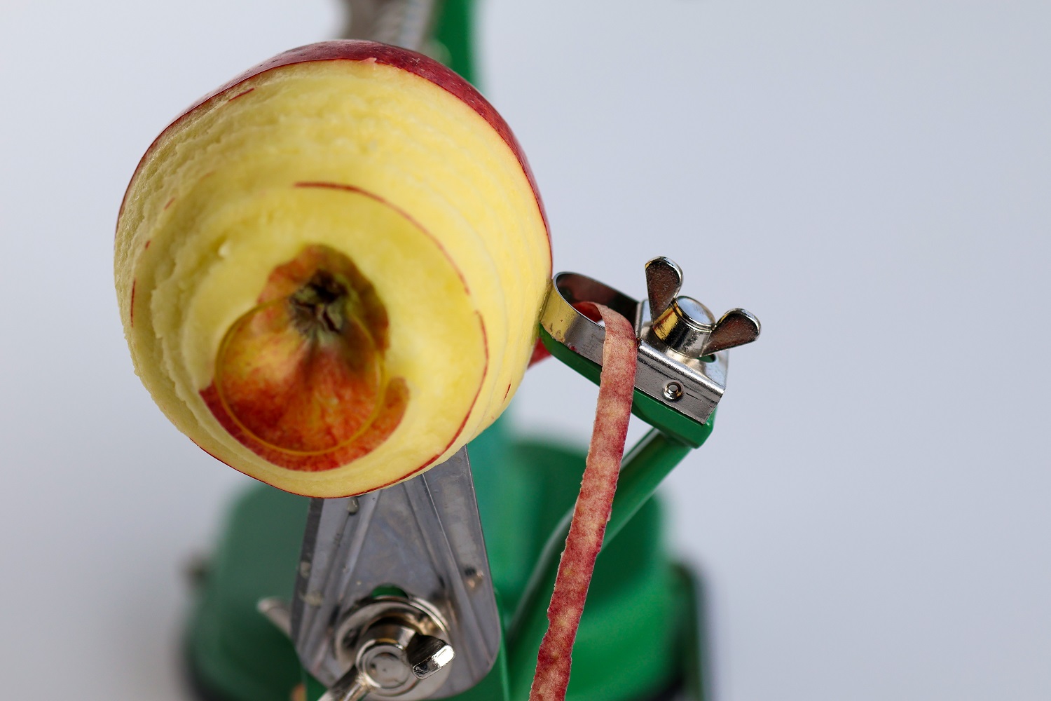 Krájení a loupání jablek může být s tímto kráječem i zábava. Kráječ vám ušetří drahocenný čas a čistota oloupání vás překvapí, s obyčejným nožem takové těžko dosáhnete.