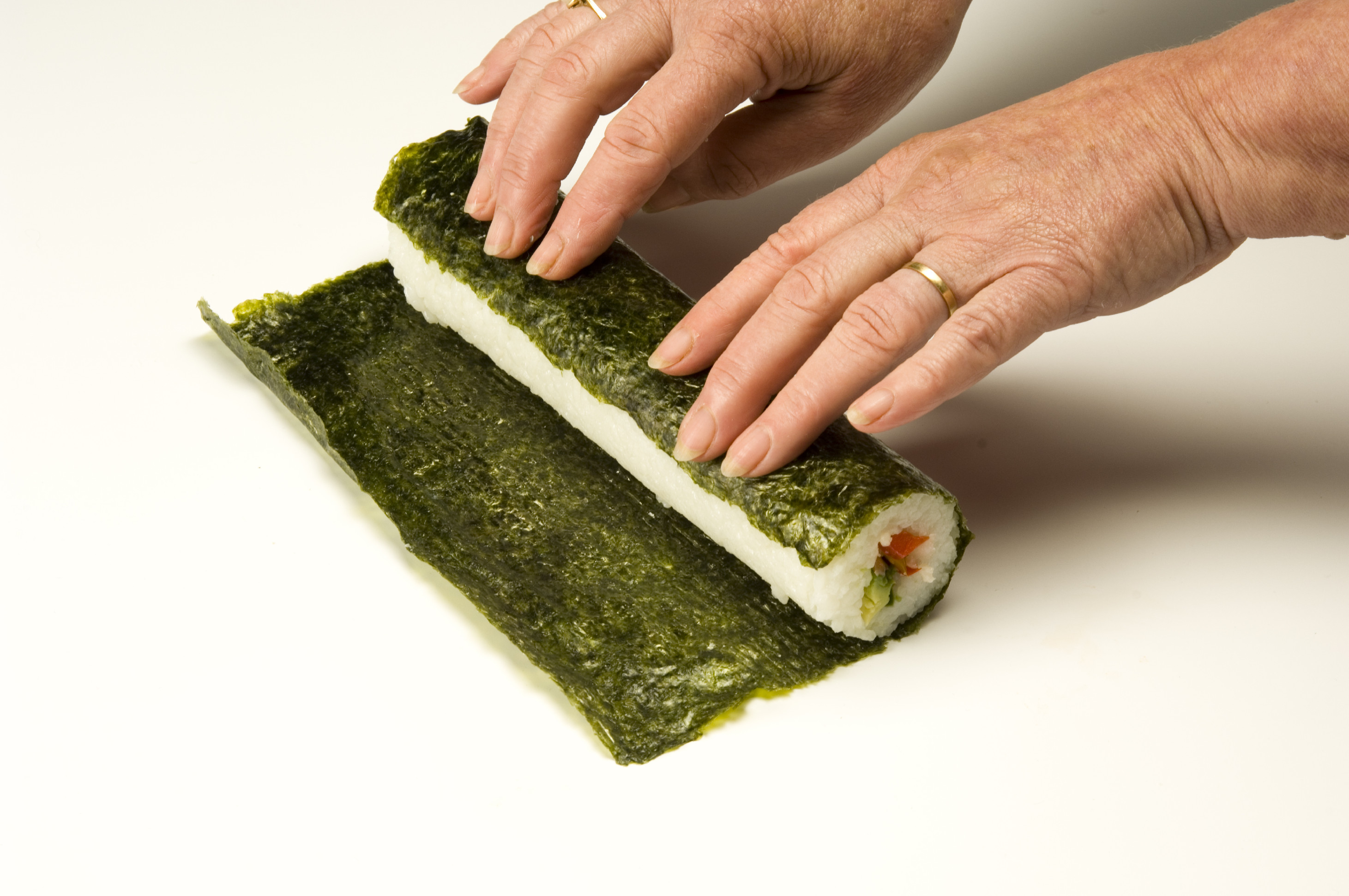 - Otevřete SUSHEZI a vnitřek lehce potřete olejem. Namočte si ruce do vody,usnadní vám to práci s rýží.