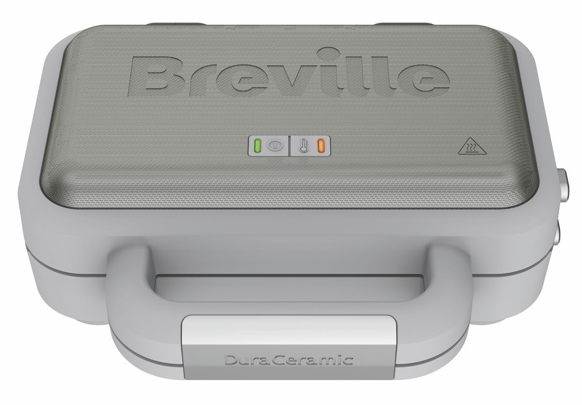 Sendvičovač Breville kombinuje elegantní vzhled se skvělou funkčností. Je vybaven nejmodernějším nepřilnavým povlakem DuraCeramic, který je odolnější proti poškrábání a čtyřikrát trvanlivější než běžné nepřilnavé povrchy. Tento keramický povrch také díky kvalitnějšímu přenosu tepla zkracuje dobu přípravy až o 20% a samozřejmě je zcela bezpečný – neobsahuje žádné škodlivé látky jako PTFE nebo PFOA.
