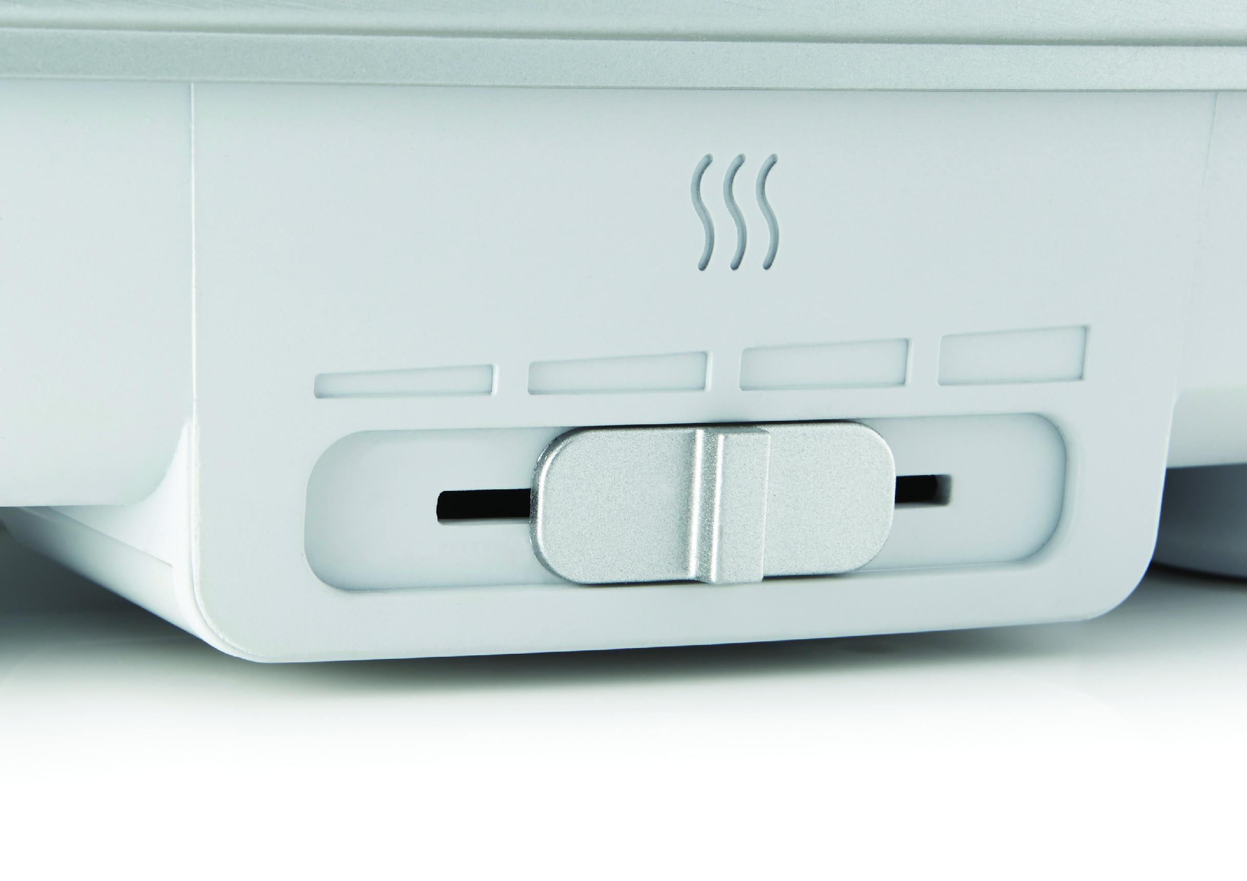 Variabilní regulátor teploty umožňuje měnit výkon podle typu připravovaného pokrmu. Nízký teplotní výkon je ideální pro přípravu pokrmů s obsahem cukru (např. cukroví). Vysoký teplotní výkon se doporučuje pro chleby a veky panini. Světelné diody pak přesně indikují, kdy je přístroj nahřátý na ideální teplotu a můžete začít s pečením.