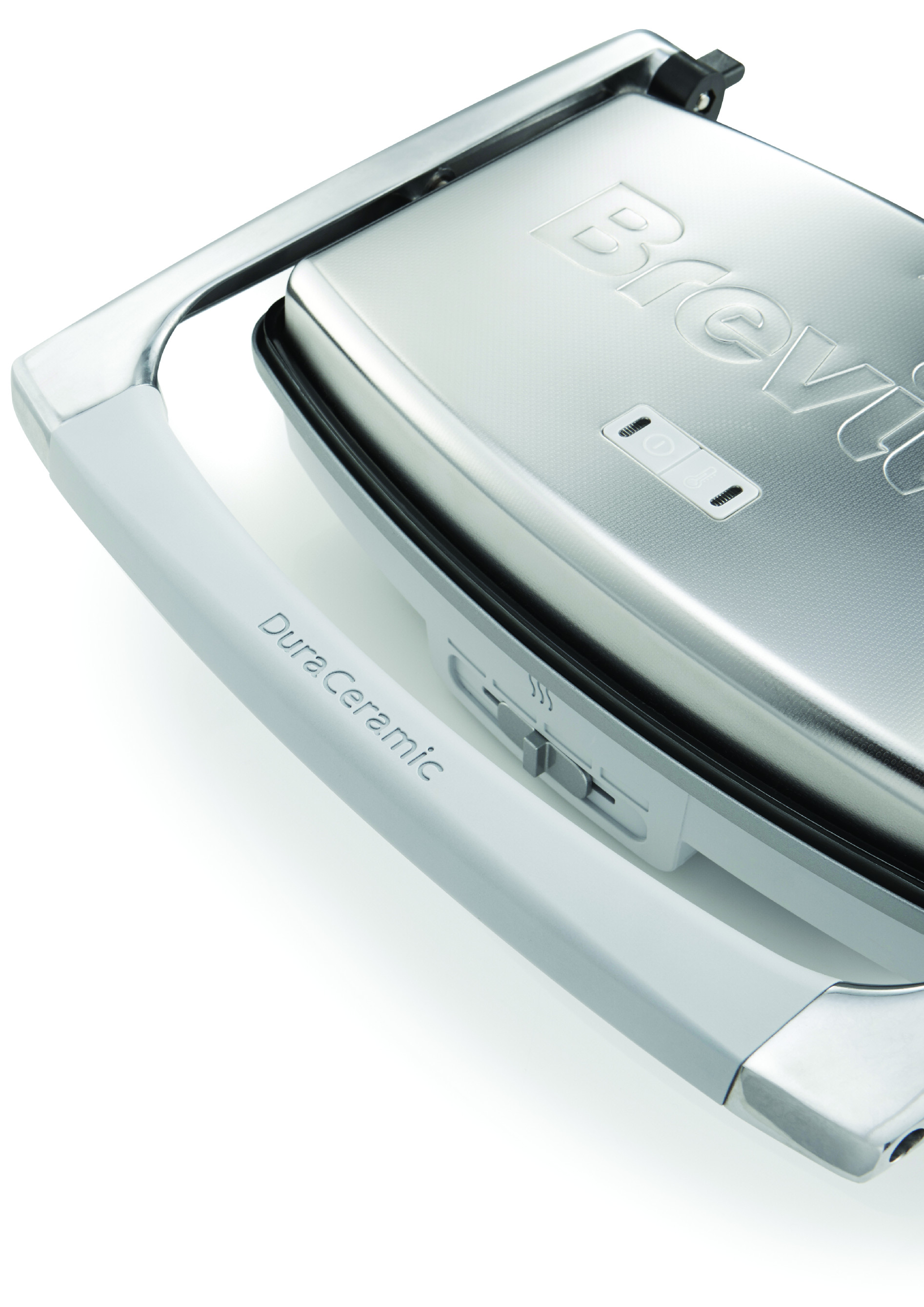 Sendvičovač Breville kombinuje elegantní vzhled se skvělou funkčností. Je vybaven nejmodernějším nepřilnavým povlakem DuraCeramic, který je odolnější proti poškrábání a čtyřikrát trvanlivější než běžné nepřilnavé povrchy. Tento keramický povrch také díky kvalitnějšímu přenosu tepla zkracuje dobu přípravy až o 20% a samozřejmě je zcela bezpečný – neobsahuje žádné škodlivé látky jako PTFE nebo PFOA.