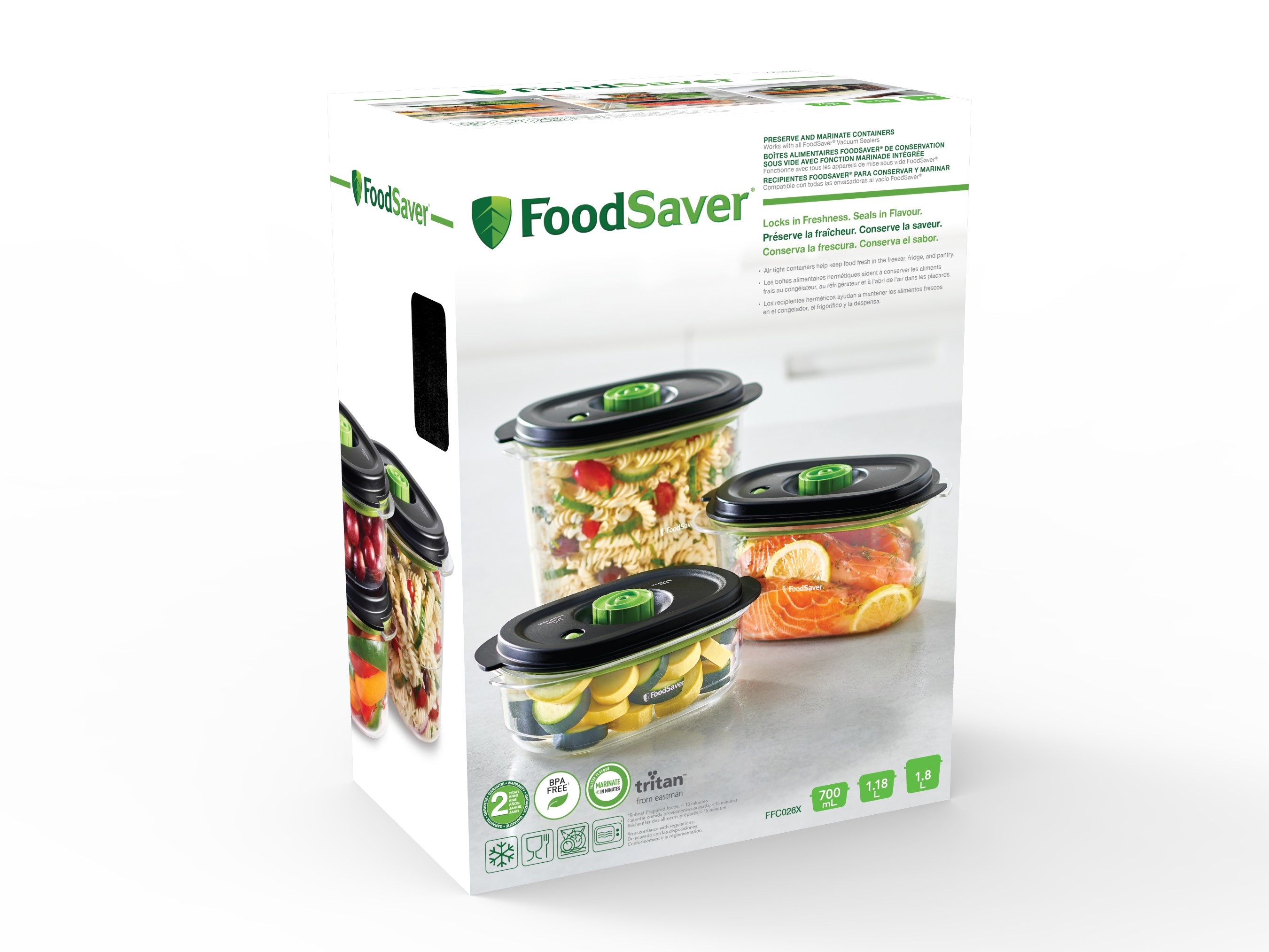 Vakuovací dózy FreshSaver druhé generace jsou dokonalým konzervačním řešením, které zajistí svěžest a zachování chuti, přičemž si můžete vybrat ze dvou různých nastavení. Vakuový režim pomáhá udržet potraviny čerstvé v mrazáku, ledničce a ve spíži. A marinovací režim slouží k marinování masa, ryb a zeleniny během několika minut místo hodin.