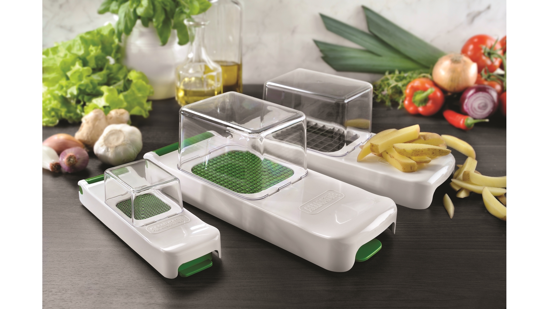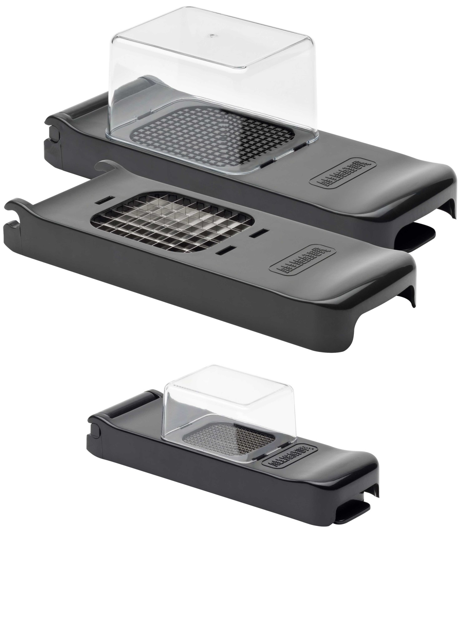 Malý sekáček umožňuje rychlou práci. Kráječ má mnoho použití, ale je obzvláště skvělý při krájení cibule na kostičky, protože vršek nejen udržuje vše úhledně obsažené, ale také pomáhá blokovat výpary, aby se nedostaly do vašich očí. Štěpkovací nástavec dokáže s malým úsilím nakrájet i tvrdou kořenovou zeleninu, což je skvělé např. i pro výrobu domácích hranolek. Mřížky se snadno čistí, stačí je nazvednout, aby se uvolnilo jakékoli zachycené jídlo, a snadno jej vyčistit. Lze mýt v myčce na nádobí.