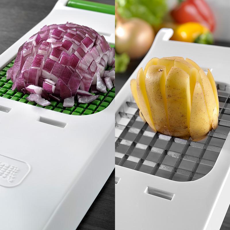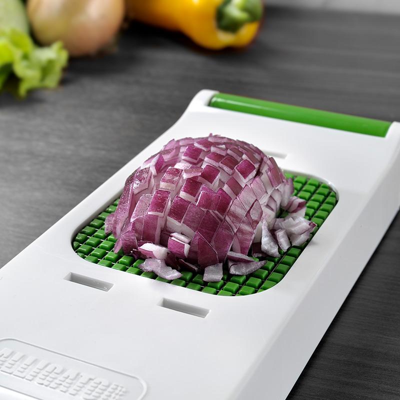 - Kráječ se čtvercovými mřížkami 6 x 6 mm je vhodný pro krájení potravin, jako je např. cibule či paprika a jiná zelenina. Odnímatelný zásobník potravin navíc chytře posbírá nasekané potraviny na jednom místě.