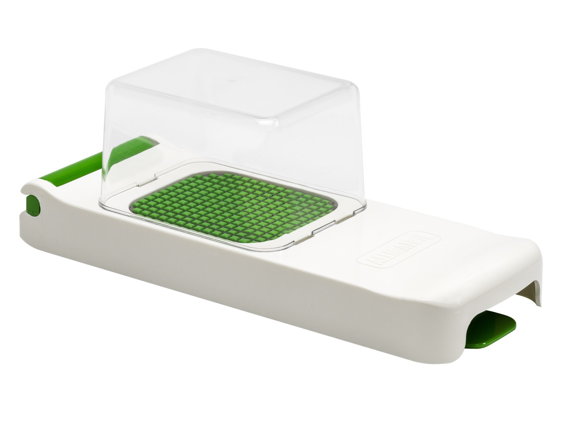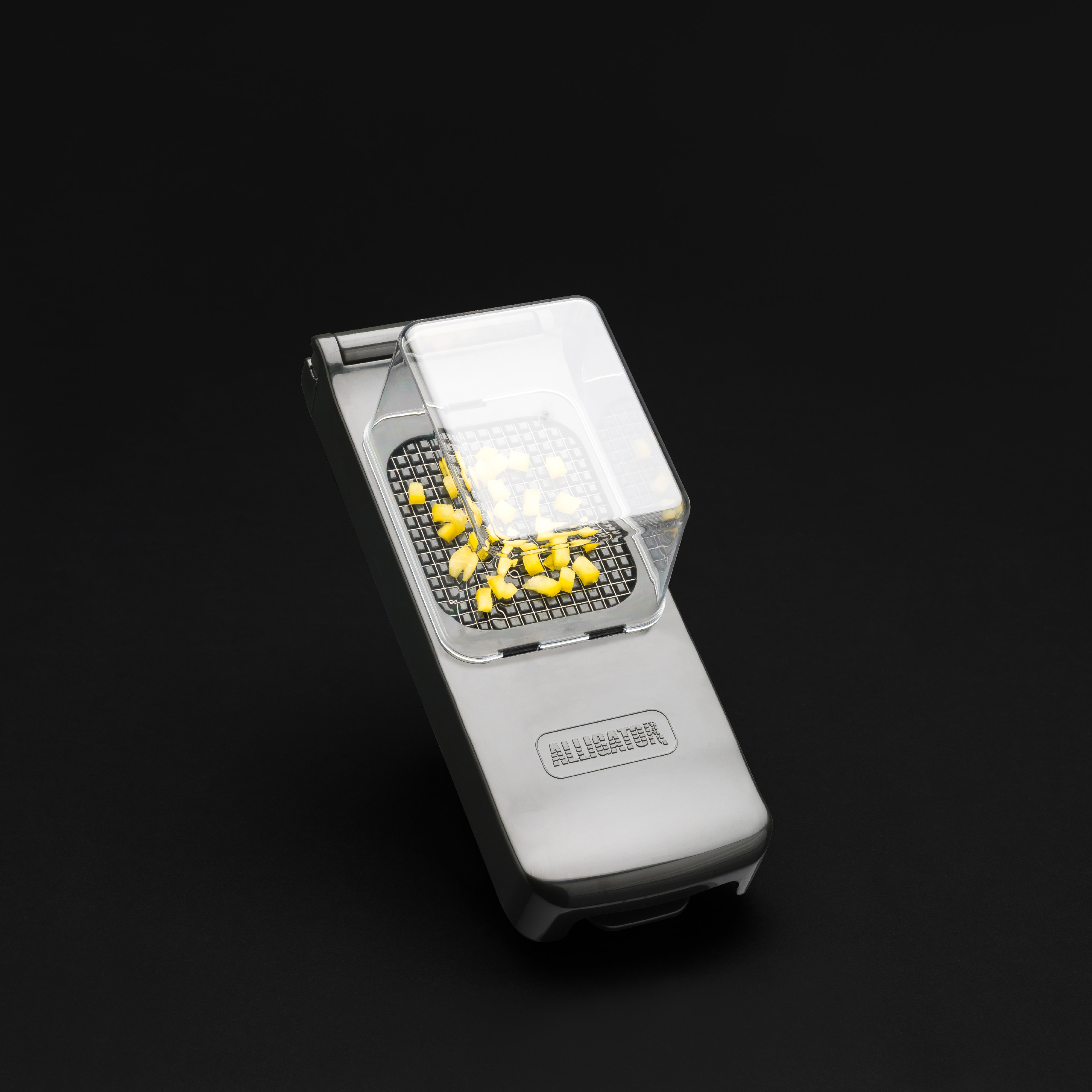 Kráječ Alligator v bílém, černém či zelenobílém provedení krájí kostky či tyčinky jedním tahem. Zásobník sbírá, co jste nakrájeli a pomáhá blokovat výpary či drobné kapičky, aby se nedostaly do Vašich očí. S tímto ručním nástrojem budou vaše prsty mimo dosah ostrých hran. Gumové nožičky se postarají o stabilitu na pracovní ploše.