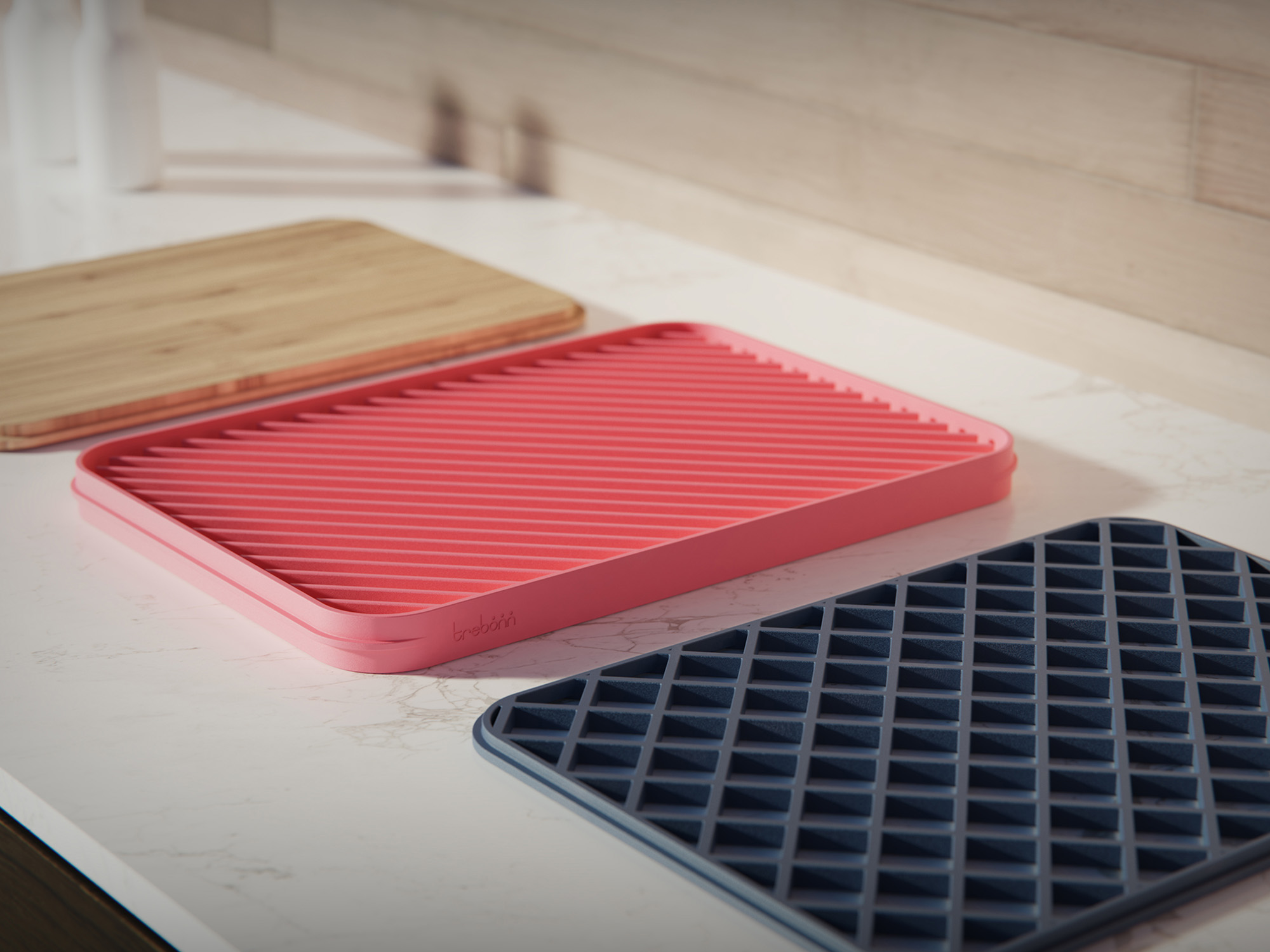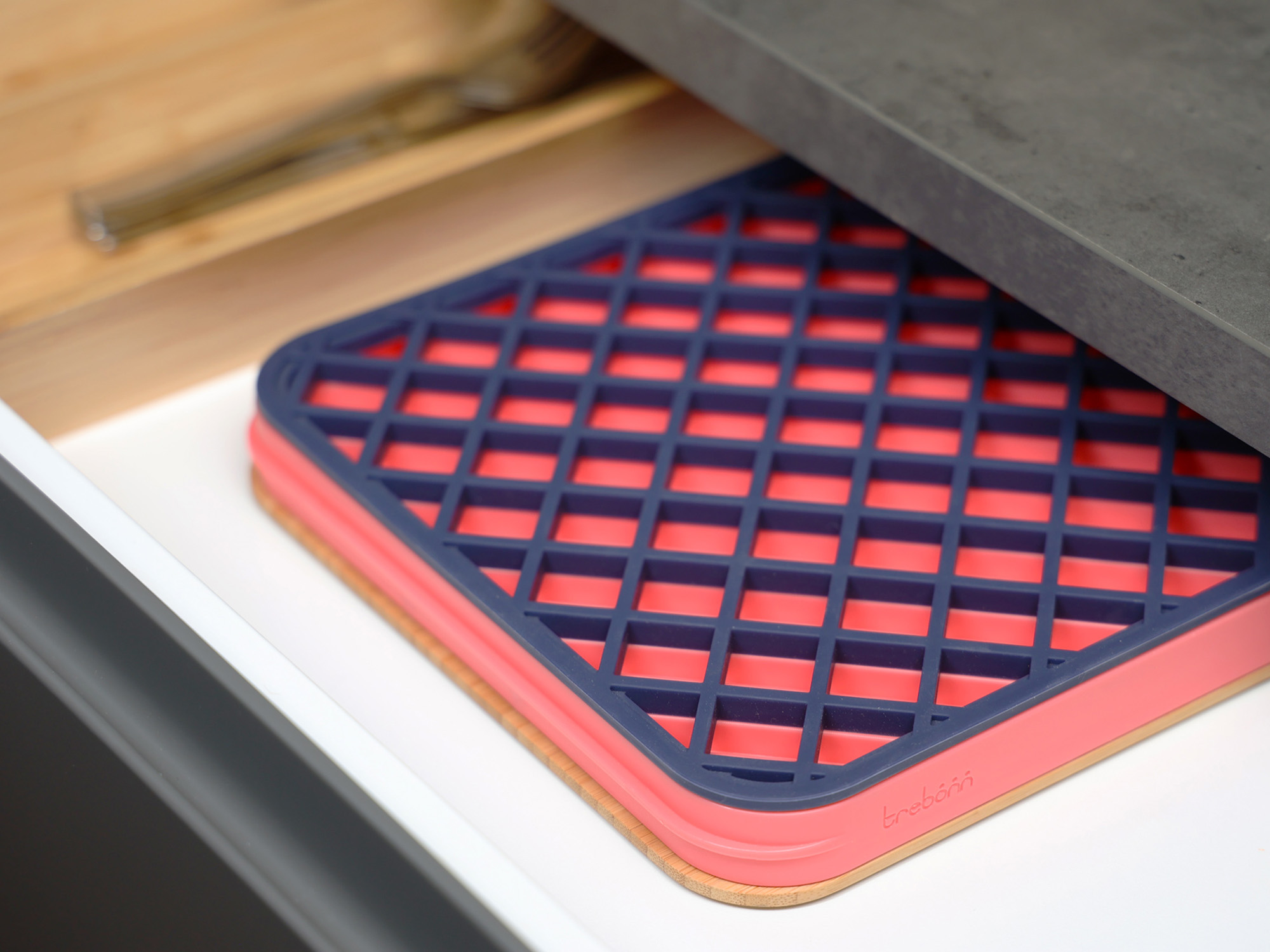 Pořiďte si praktický designový set, který v kuchyni rozhodně využijete. Skládá se z praktického bambusového prkénka s protiskluzovým dnem, odkapávače na nádobí a příbory a silikonové podložky pro bezpečné umístění horkého nádobí jako jsou hrnce a pánve.