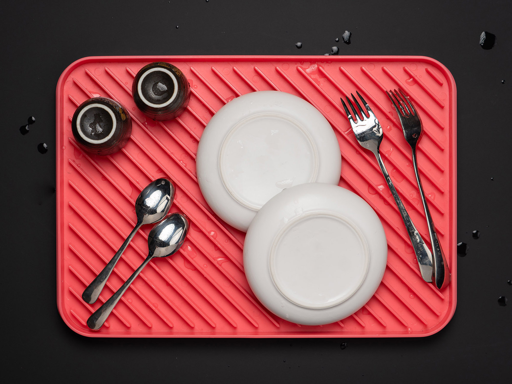 Součástí balení je praktické bambusové prkénko, odkapávací podložka na nádobí a příbory a silikonový držák na horké nádobí. V kuchyni je můžete uložit na sebe a ušetřit tímto způsobem místo.