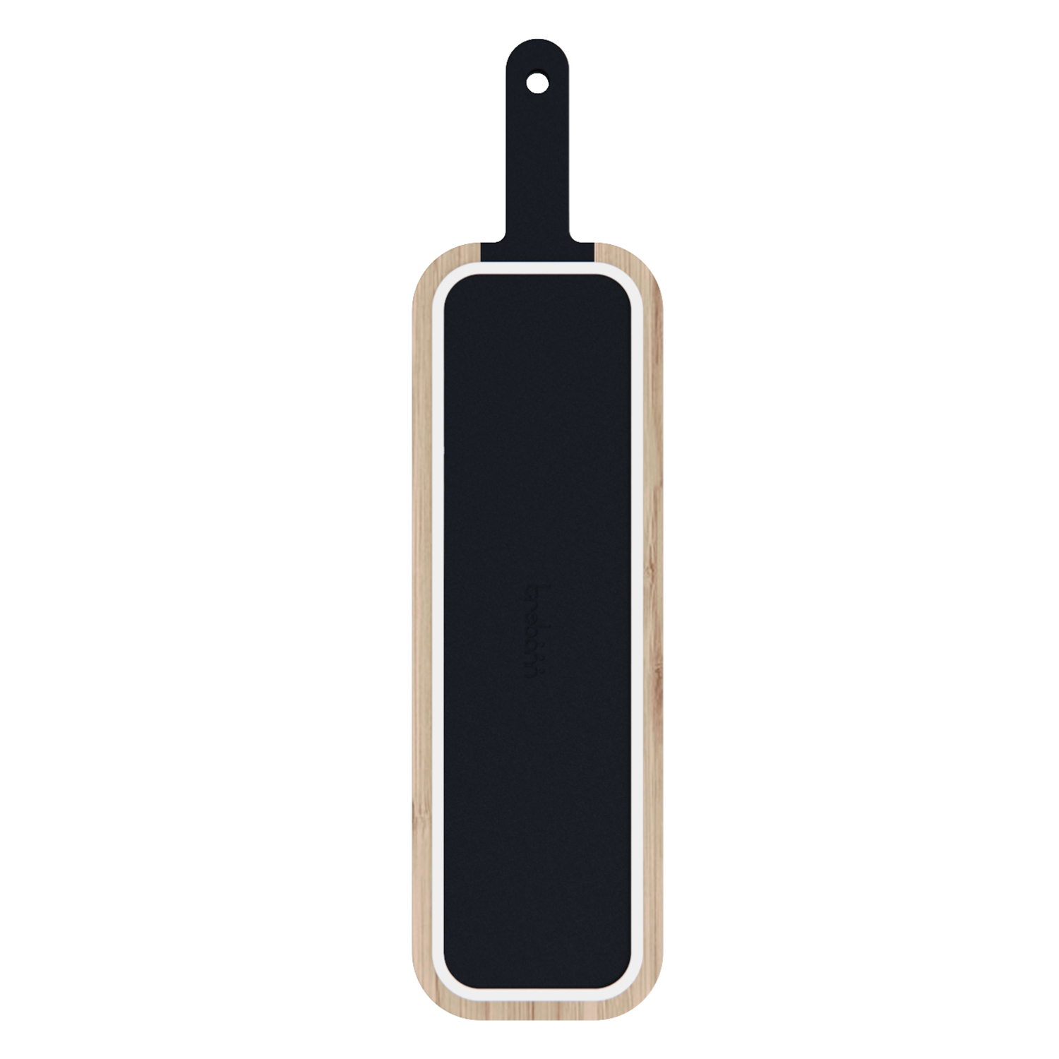 Bambusové prkénko Trebonn - Artù s integrovaným nožem na krájení salámu v černém provedení. Vybaveno speciálními drážkami pro usnadnění krájení.