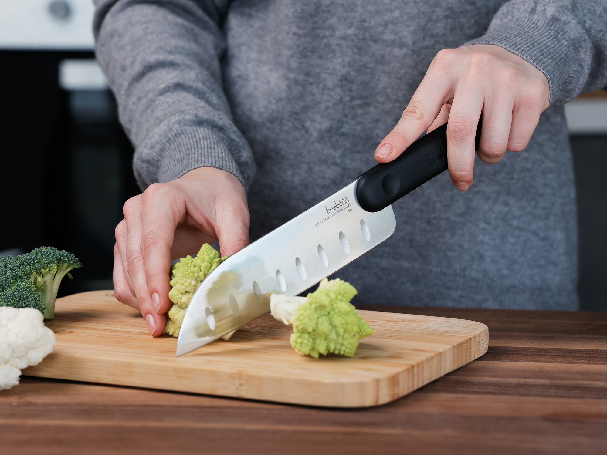Vysoce výkonné čepele z japonské nerezové oceli nejvyšší kvality a bezpečná protiskluzová rukojeť představují kuchyňské nože od Trebonn. Nádech originálního a praktického designu s přílivem kreativních barev do Vaší kuchyně.