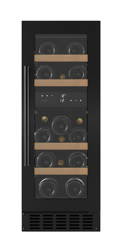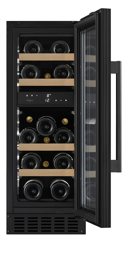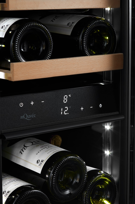 Vinotéka má dvě teplotní zóny a čtyři výsuvné dřevěné police s kapacitou pro 16 lahví. Digitální displej usnadňuje výběr požadované teploty a vnitřního LED osvětlení. Vinotéka je vybavena invertorovým kompresorem, který pracuje na tišší, rovnoměrnější úrovni zvuku, spotřebovává méně energie a umožňuje rychlejší obnovu teploty.