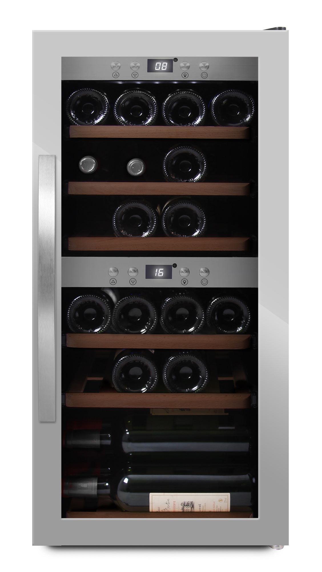 Vinotéka je navržena pro všechny typy lahví, takže je tu místo i pro vaše šumivá vína. Chladnička na víno má robustní tlačítka pro ovládání funkcí a nastavení se zobrazuje digitálně. Výsuvné dřevěné police hladce kloužou po stabilních kolejnicích polic.