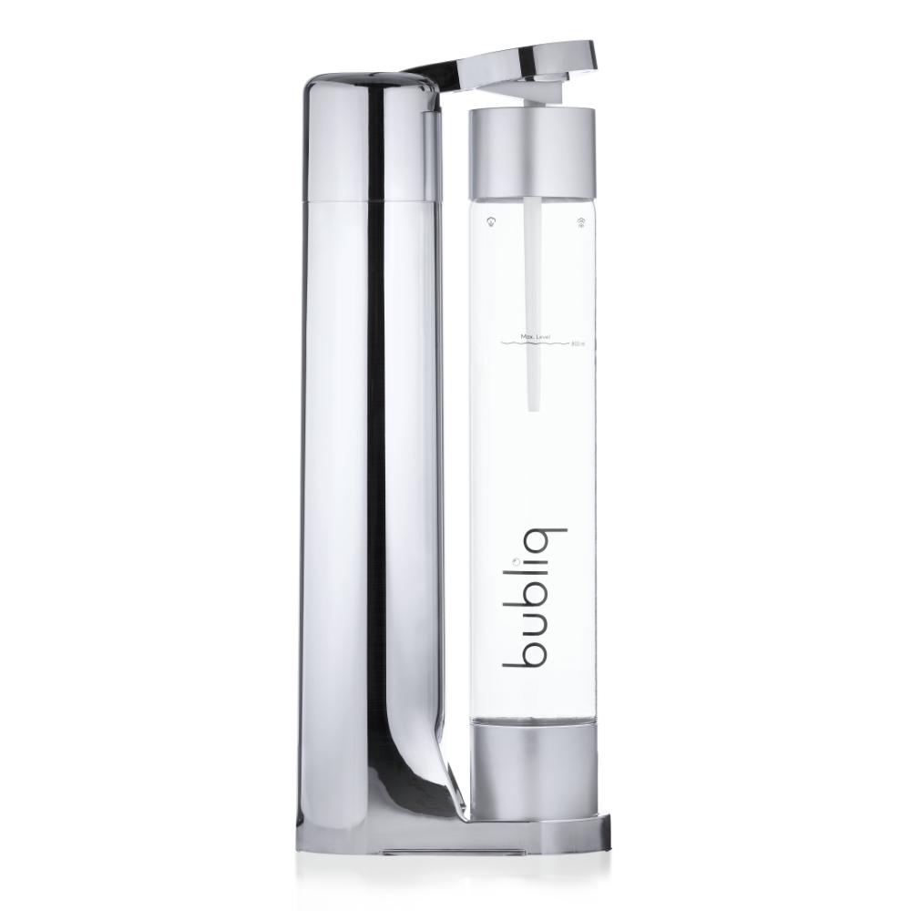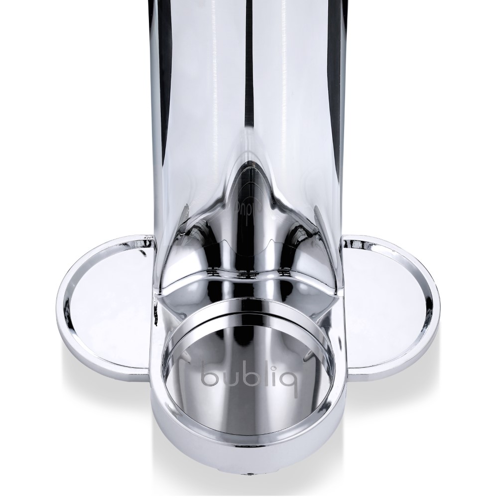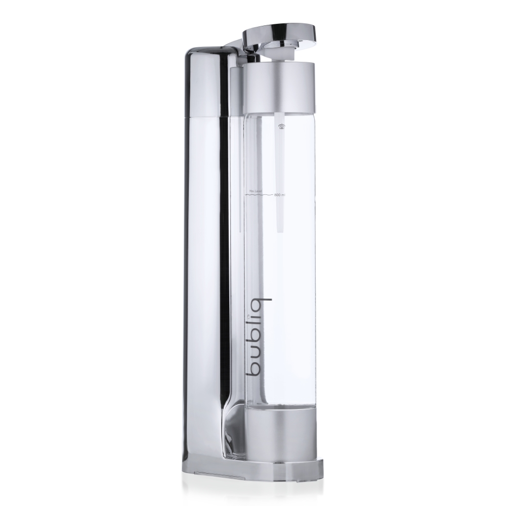 Výrobník sody Bubliq používá patentovanou technologii Air-Charge, díky které je výroba sycených nápojů mimořádně jednoduchá. Stačí jen nasadit uzávěr, vložit láhev na stojánek a párkrát stisknout vrchní část spotřebiče. Lahev není třeba nijak složitě šroubovat ani ohýbat.