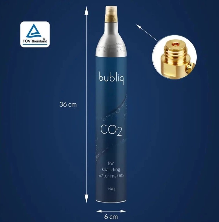 Druhá varianta je s originální bombičkou CO2 Bubliq s obsahem 450 g (85L), což je o 25 g navíc oproti všem ostatním modelům na trhu. Výměnu bombičky si pak můžete zajistit přes naší firmu.