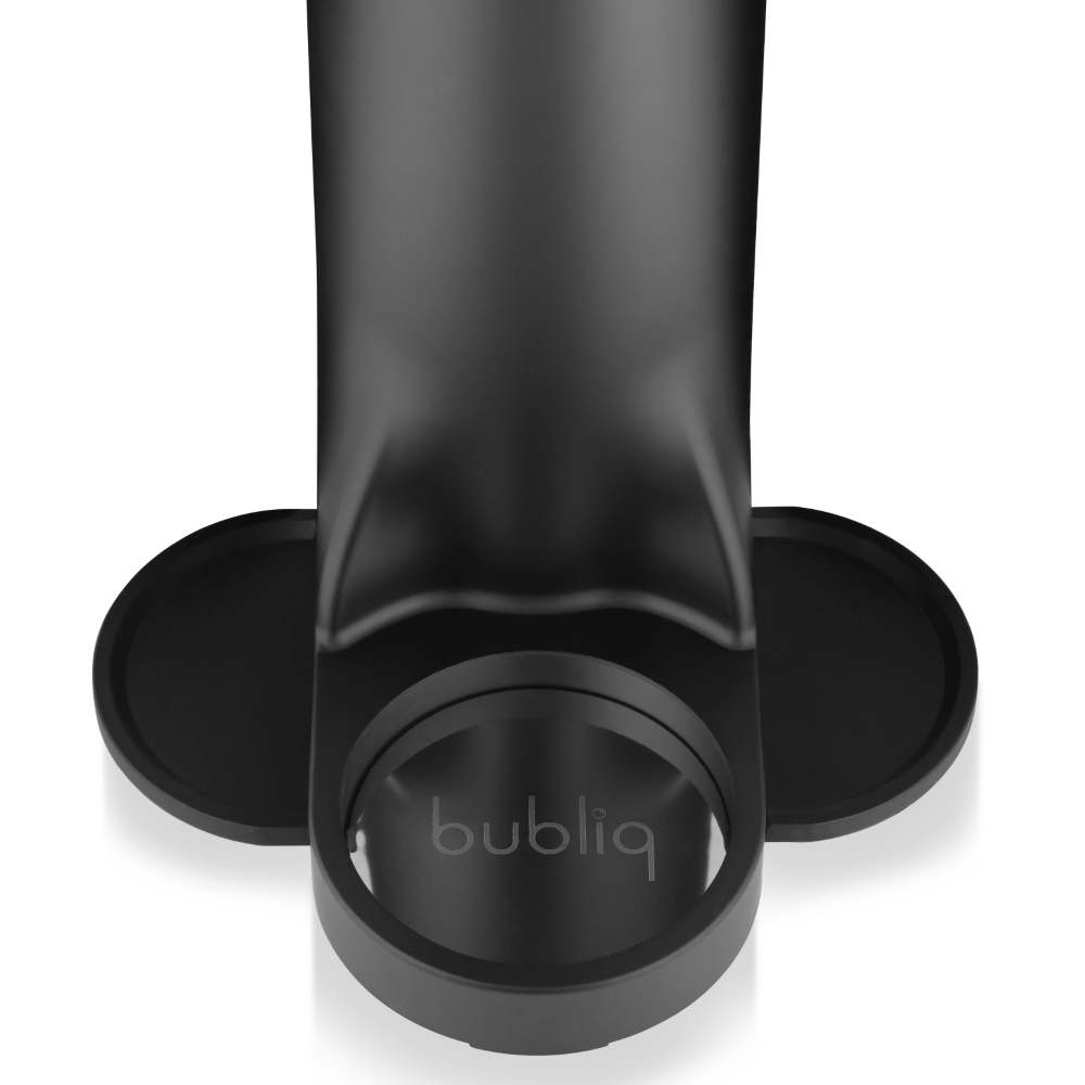 Výrobník sody Bubliq používá patentovanou technologii Air-Charge, díky které je výroba sycených nápojů mimořádně jednoduchá. Stačí jen nasadit uzávěr, vložit láhev na stojánek a párkrát stisknout vrchní část spotřebiče. Lahev není třeba nijak složitě šroubovat ani ohýbat.