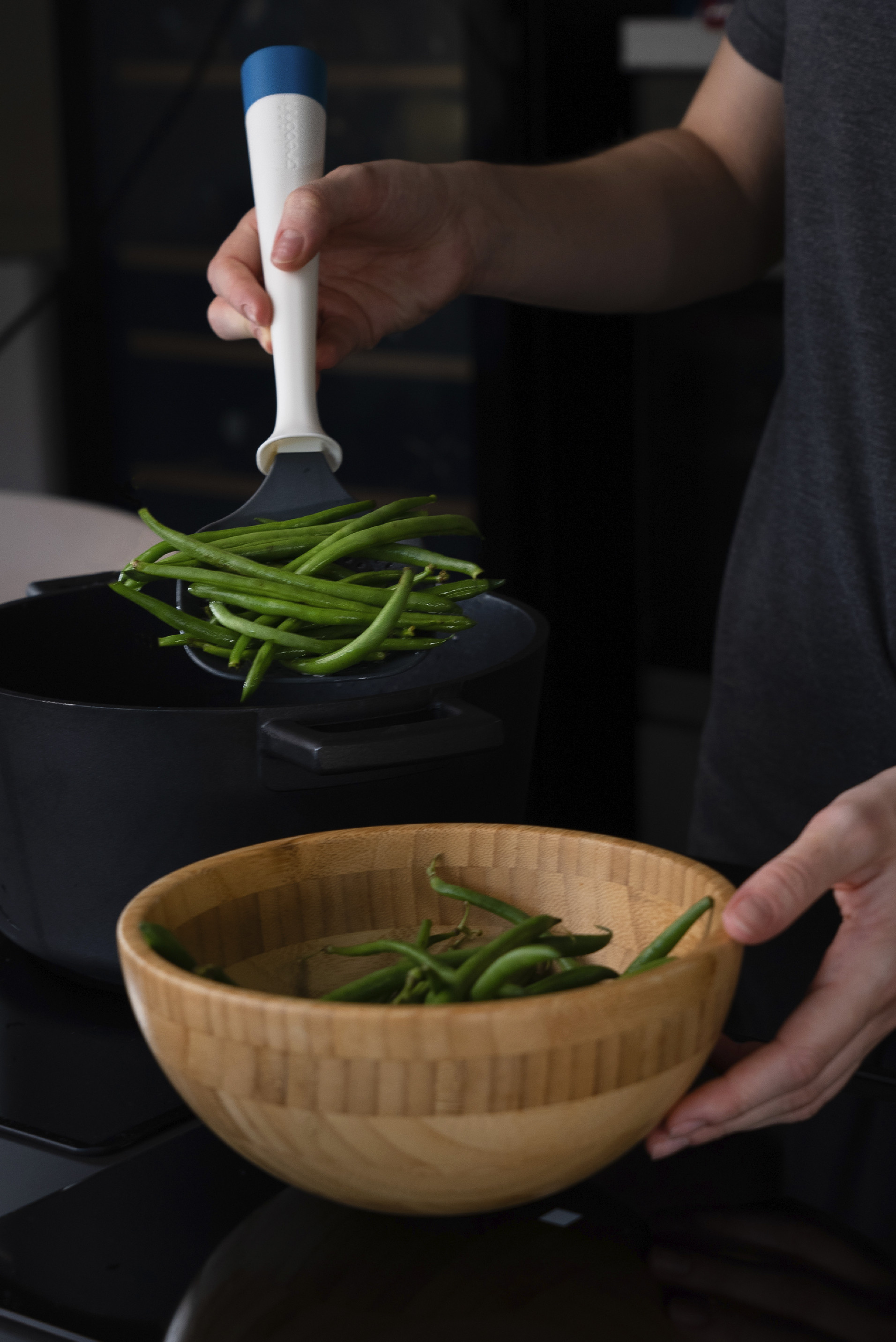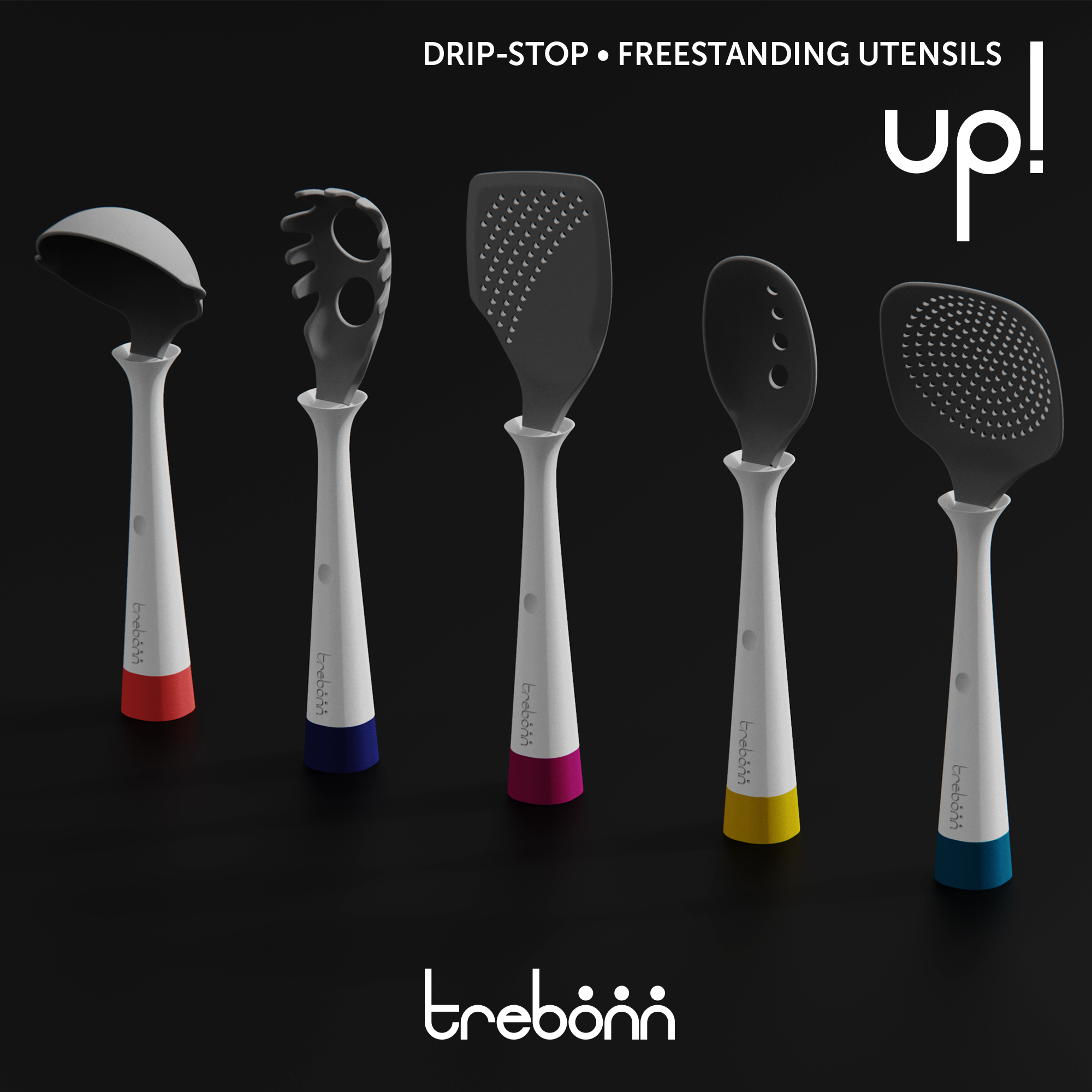 Řada kuchyňského náčiní UP! nabízí jediné kuchyňské nástroje navržené tak, aby stály samy bez odkapávání. Samostojná rukojeť je vyrobena z měkkého neklouzavého materiálu.
