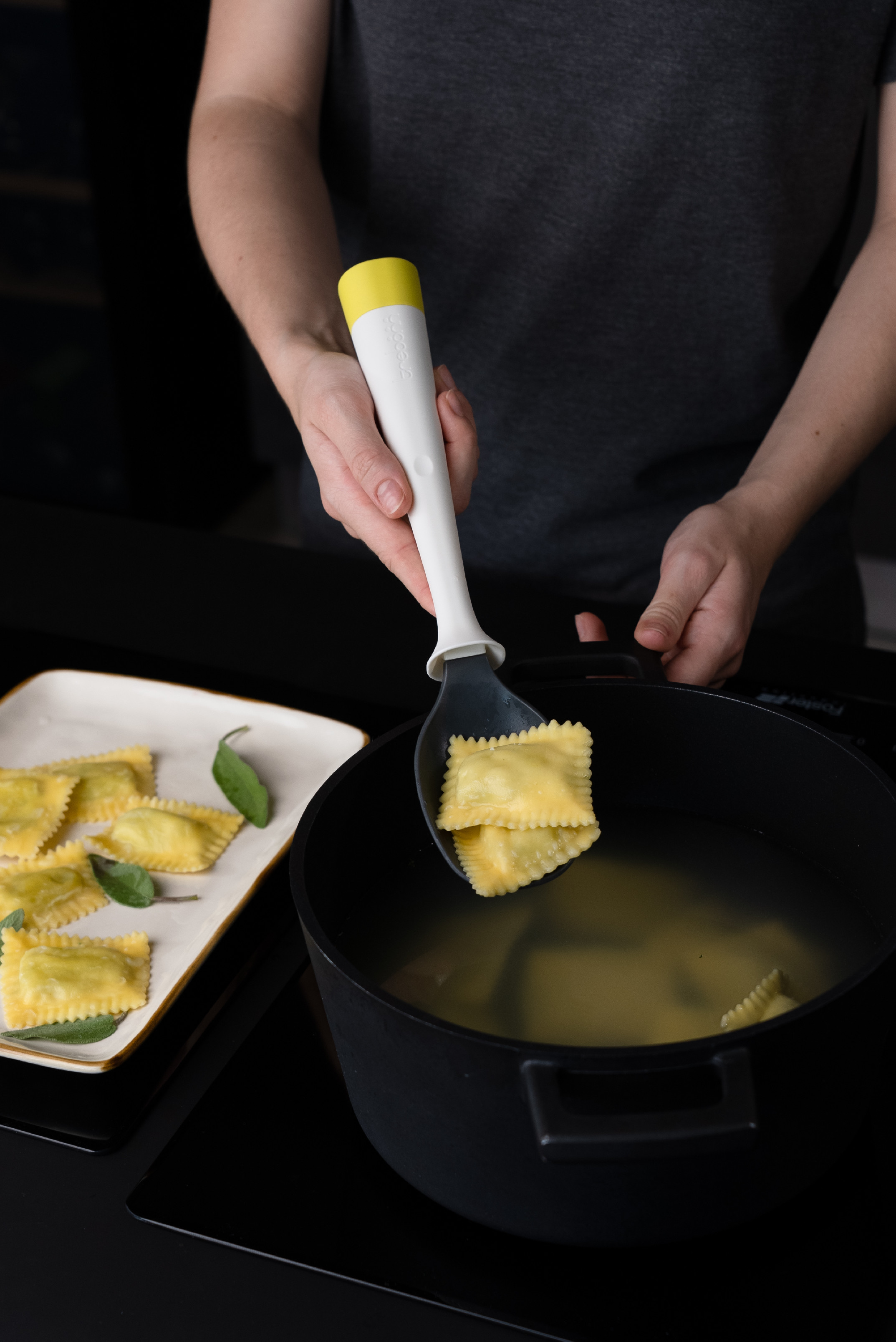 Naběračka UP! je vyrobena z pevného nylonu, odolnému vůči teplotám do 200°C, šetrná vůči nádobí.