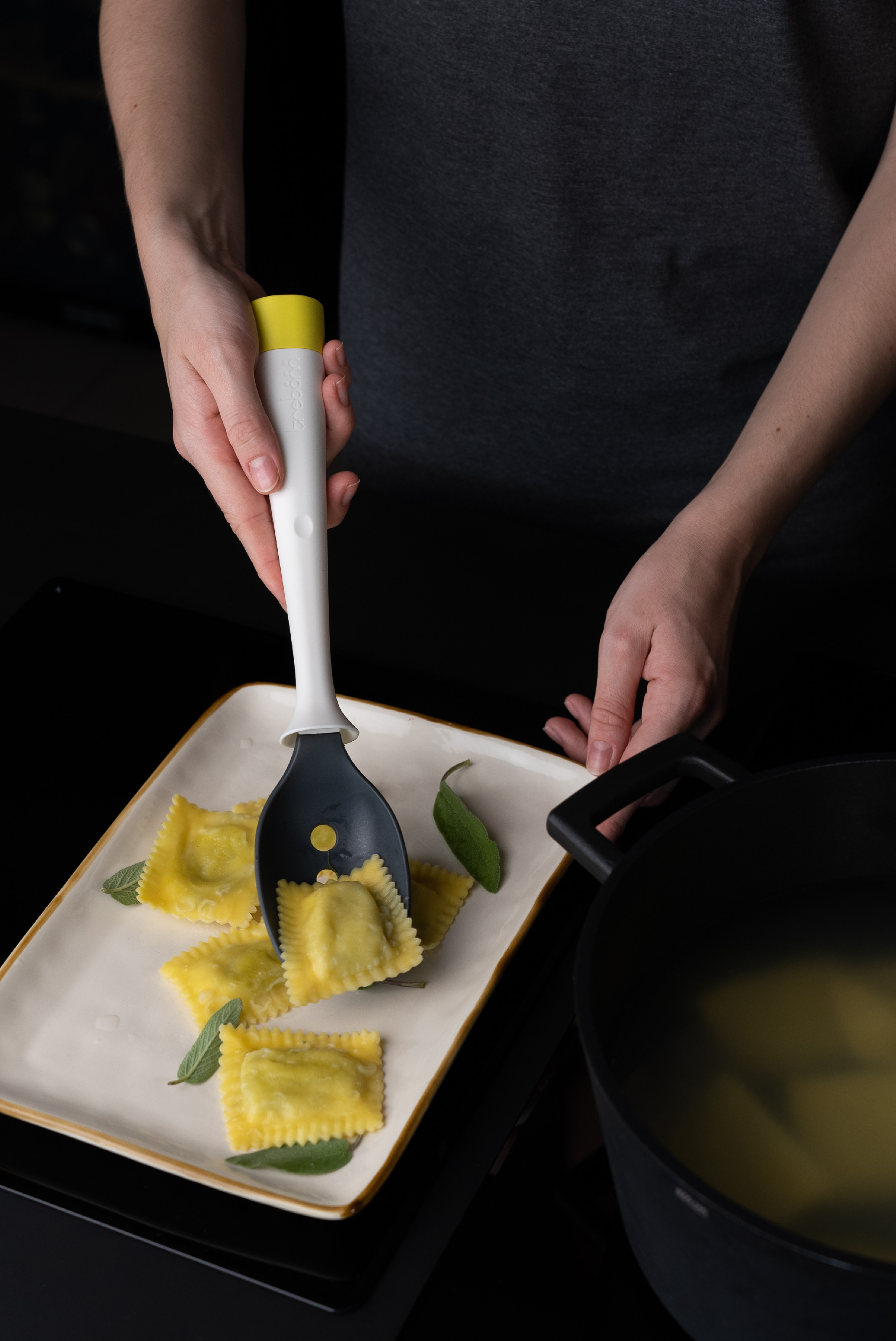 Řada kuchyňského náčiní UP! nabízí jediné kuchyňské nástroje navržené tak, aby stály samy bez odkapávání. Samostojná rukojeť je vyrobena z měkkého neklouzavého materiálu.