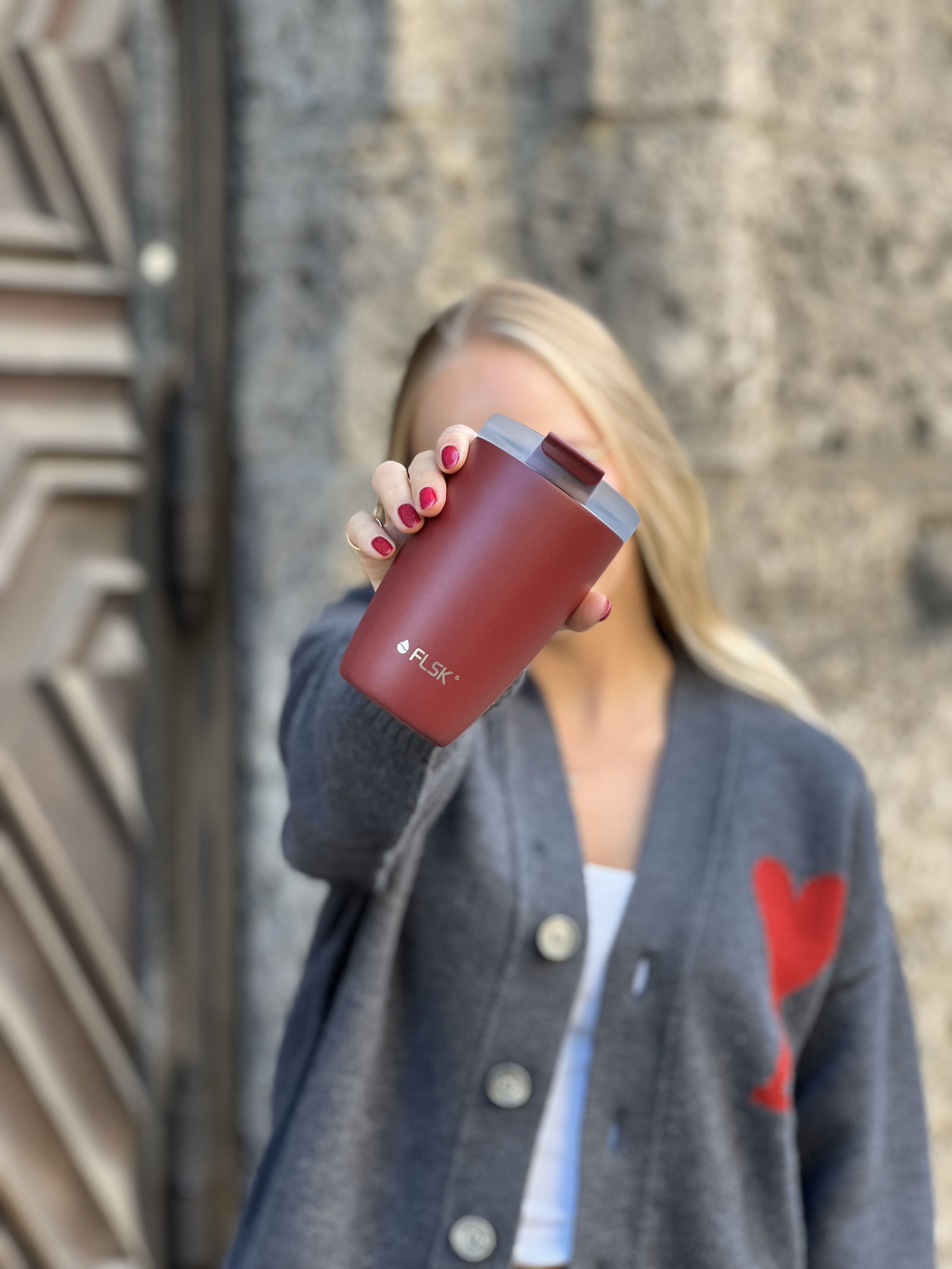 Ve svém stylovém termohrnku FLSK si můžete jednoduše vzít kávu na cestu do práce. Díky dokonale padnoucímu víčku vám rozlití nehrozí a vydrží vám horká až 3 hodiny.