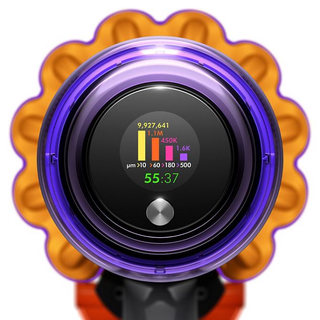 Pokročilý sedmičlánkový akumulátor poskytuje výkon bez poklesu pro důkladný úklid celého domu. Pro ještě delší úklid je možné akumulátor snadno vyměnit za další (prodává se samostatně). - Měří mikroskopické prachové částice