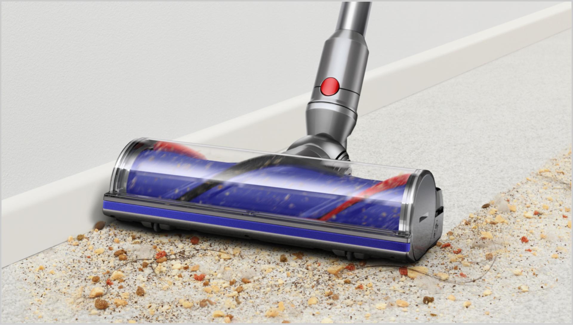 Nejvýkonnější podlahová hubice Dyson. Integrovaný digitálně řízený motor otáčí rotačním kartáčem až 60 krát za sekundu. Tlačí tuhé nylonové štětiny hluboko do koberce a odstraňuje nečistoty a antistatická karbonová vlákna zachytávají jemný prach z tvrdých podlah.