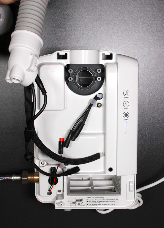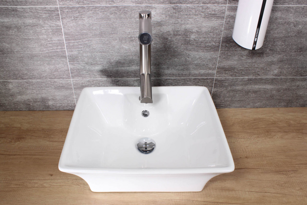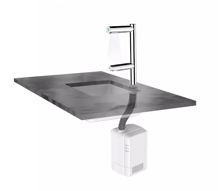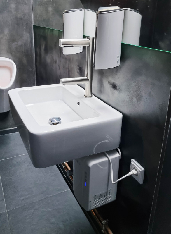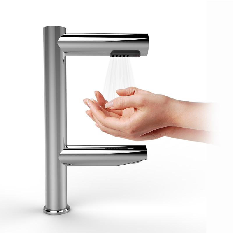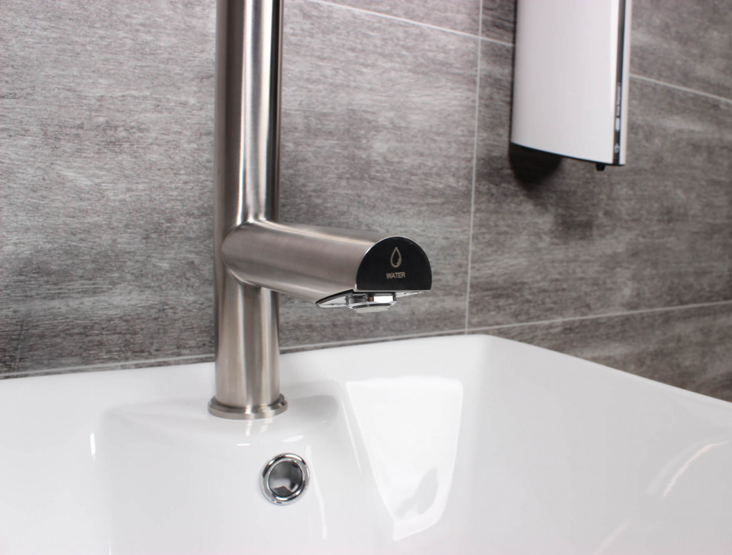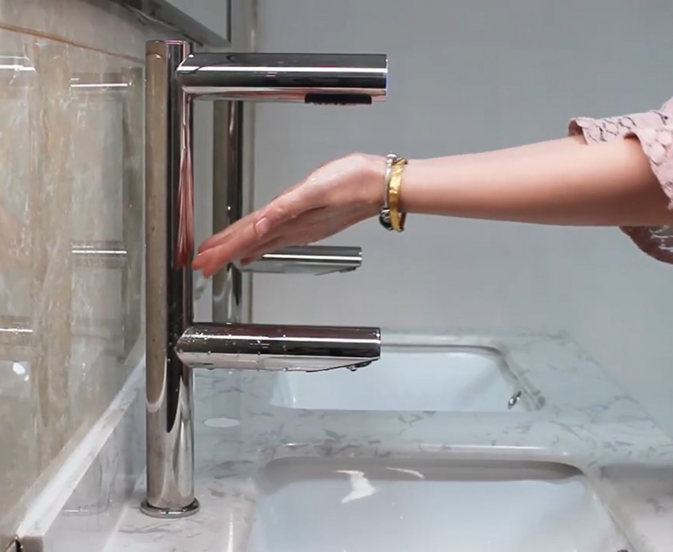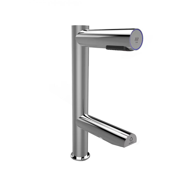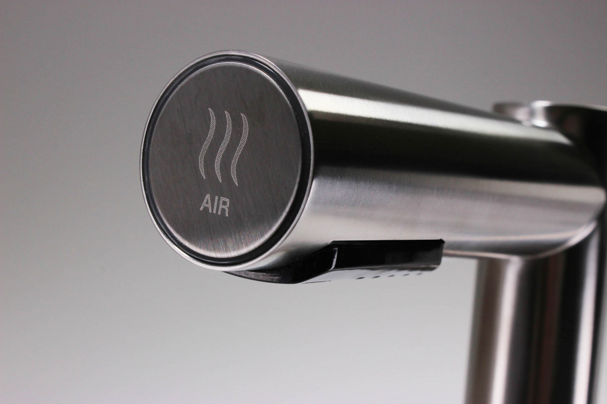 Hygienické umytí a osušení rukou nebylo nikdy jednodušší. Vložením rukou pod vodovodní baterii začne automaticky téct voda o předem nastavené teplotě. Hned nad automatickou baterií se nachází vyústění trysky vysoušeče. Spuštění je také bezkontaktní, stačí vsunout ruce a pohybovat s nimi podobně jako při mytí. Na přední části ramena vysoušeče se nachází podsvětlený kroužek. Kroužek pulzuje bílým světlem, čímž upozorňuje na funkci vysoušeče. Při používání svítí modře.