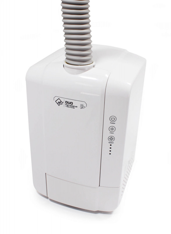 S Jet Dryer DUO si můžete vybrat ze čtyř rychlostí vysoušení. Na nižší stupeň je provoz vysoušeče velmi tichý. Na vyšších stupních pak trvá vysoušení kratší dobu. Přepínat rychlosti můžete pohodlně na ovládacím panelu na jednotce vysoušeče.