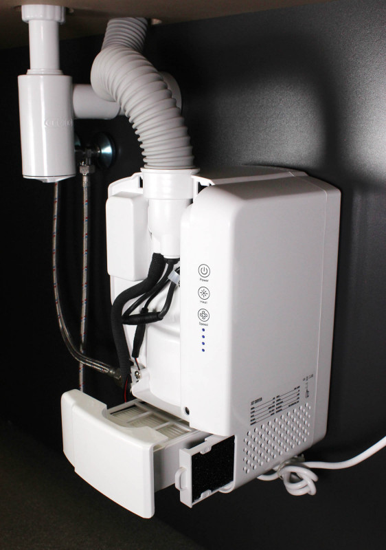 Instalace vysoušeče ve vodovodní baterii Jet Dryer DUO je možná bez nutnosti zásadních stavebních úprav. Jednotka se jednoduše postaví pod umyvadlo. Další možností je montáž na závěsnou desku.