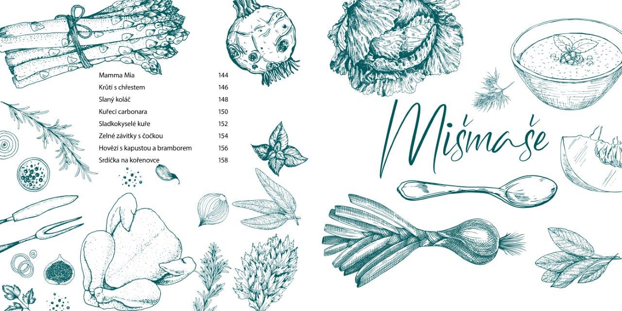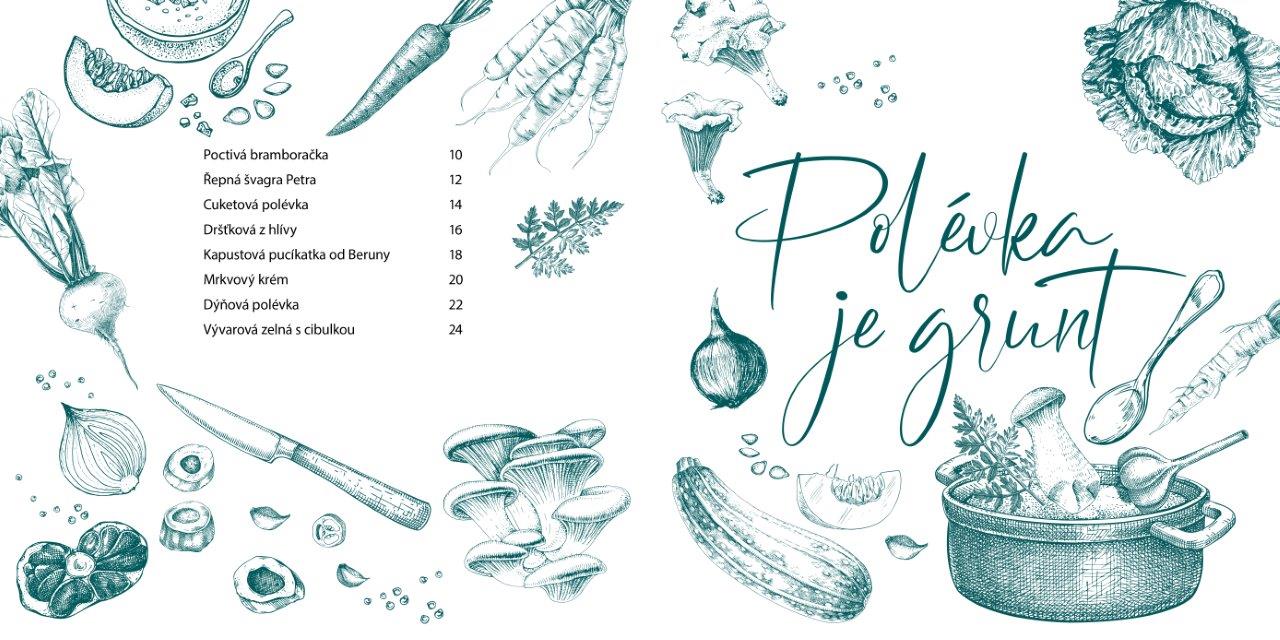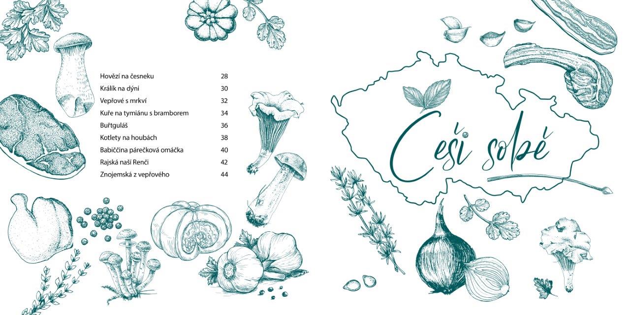 Třináct kapitol s celkovým počtem 90 receptů vytištěných na křídovém matném papíru. Pro usnadnění práce je příprava pokrmů v knize doplněna názornými foto-postupy. Recepty obsahují fotografie surovin, jednotlivých fází přípravy i finálních podob pokrmů. Popis pracovního postupu je díky fotografiím přehledný a také stručnější, než je obvyklé v klasických kuchařkách.