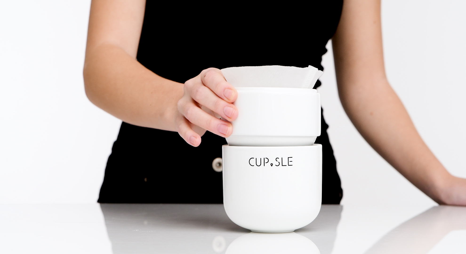 K dripperu na překapávanou kávu CUP.SLE je třeba dokoupit papírové filtry o velikosti 1. Uvnitř dripperu je otvor, kterým skrz filtr protéká káva, a také drážky, které přidržují filtr na místě a odvádí vzduch.