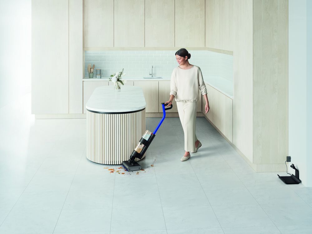 Dyson WashG1™ je účinný způsob, jak odstranit nečistoty, rozlité tekutiny a dokonce i odolné skvrny. Ideální na dlaždice, vinyl, laminát a impregnované dřevěné podlahy ve vaší chodbě, kuchyni, koupelně a jídelním prostoru.