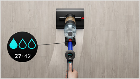 Výzkum zjistil, že použití podtlakového sání pro mokrý úklid může vést k nepříjemným zápachům unikajícím z výfuku vysavače. Proto konstruktéři společnosti Dyson zvolili odlišný přístup – a vyvinuli tento inovativní systém: