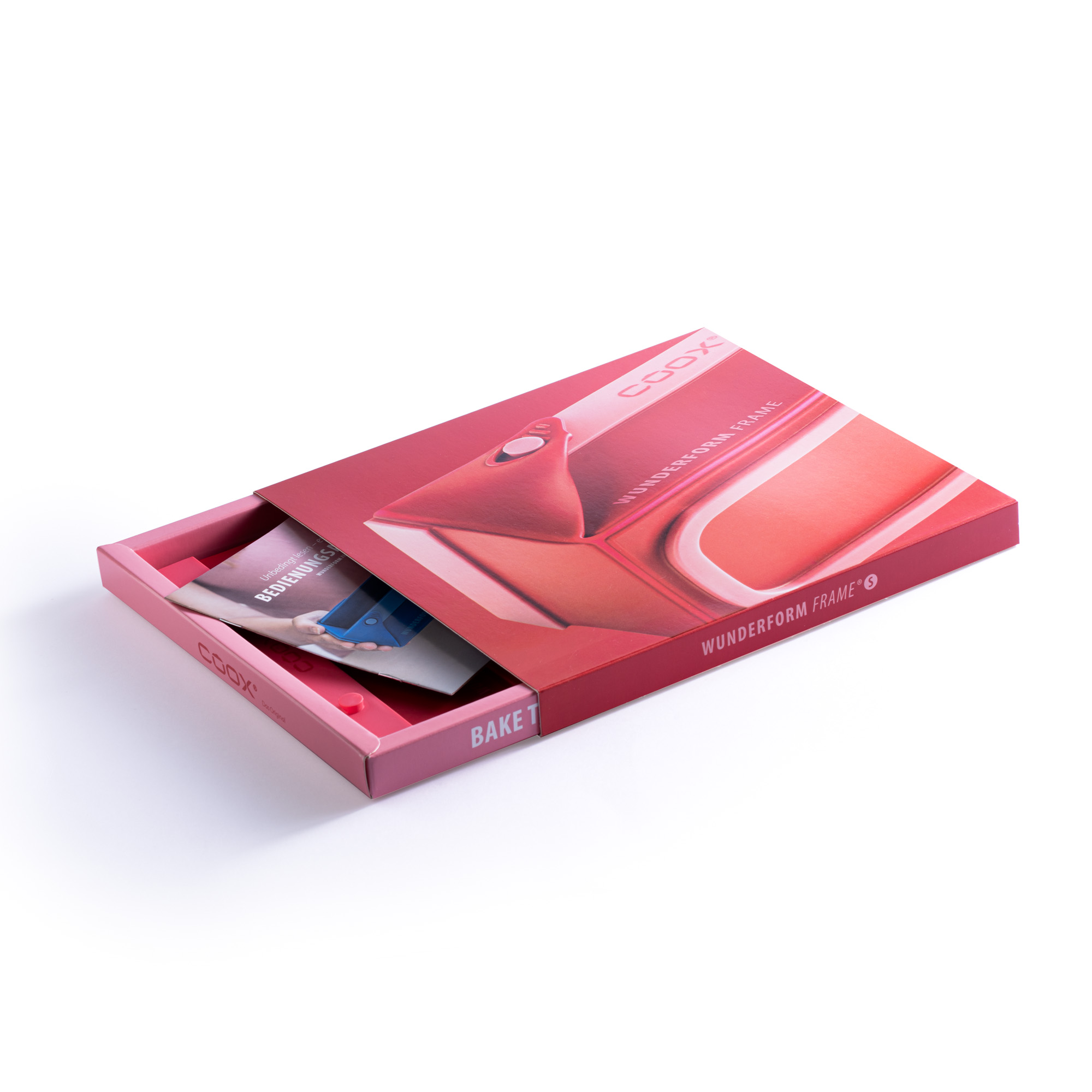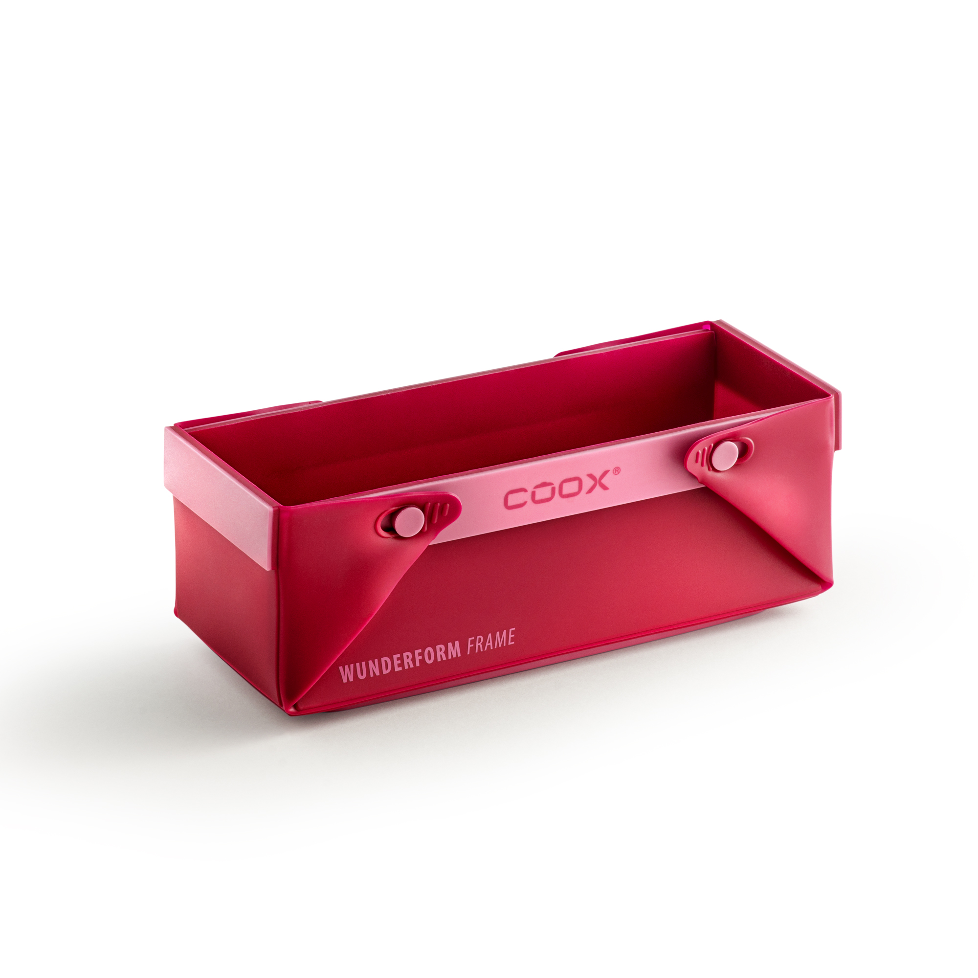 Revoluce v pečení! Rozkládací forma coox WUNDERFORM Frame S změní způsob, jak připravujete sladká i slaná jídla. Díky skládacím rohům formu snadno rozevřete a dort, chléb či zapečené jídlo nemusíte vyklápět – jednoduše servírujete přímo z formy. Kovové výztuže zajišťují pevnost, silikonový materiál s antiadhézní úpravou maximální komfort. Pro bezpečné krájení přímo na silikonové formě můžete využít speciální multifunkční nástroj. Případně lze formu pro snadný transport a skladování doplnit o plastové víko.