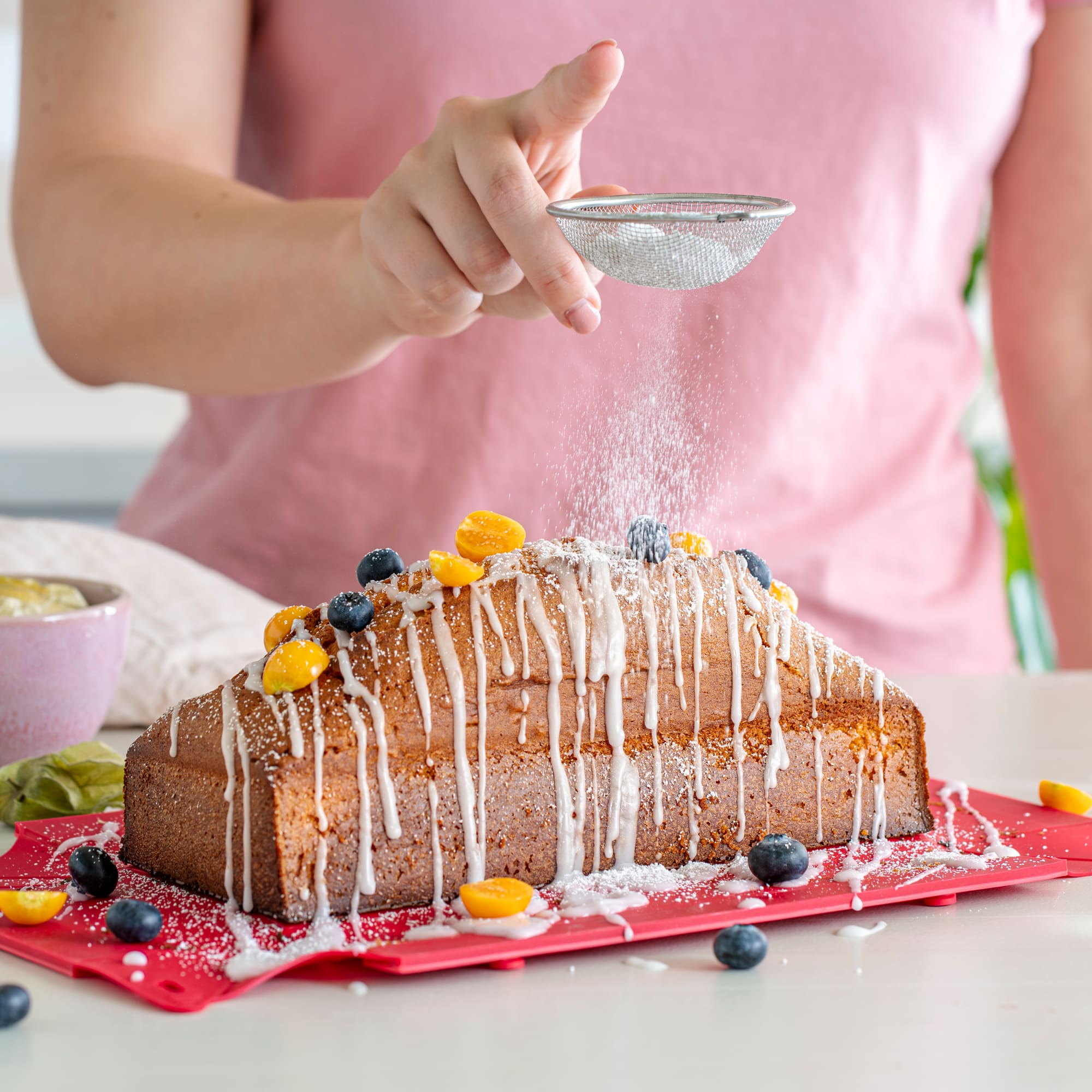 Revoluce v pečení! Rozkládací forma coox WUNDERFORM Frame L změní způsob, jak připravujete sladká i slaná jídla. Díky skládacím rohům formu snadno rozevřete a dort, chléb či zapečené jídlo nemusíte vyklápět – jednoduše servírujete přímo z formy. Kovové výztuže zajišťují pevnost, silikonový materiál s antiadhézní úpravou maximální komfort. Pro bezpečné krájení přímo na silikonové formě můžete využít speciální multifunkční nástroj. Případně lze formu pro snadný transport a skladování doplnit o plastové víko.