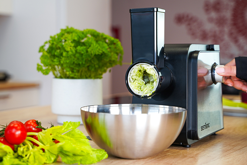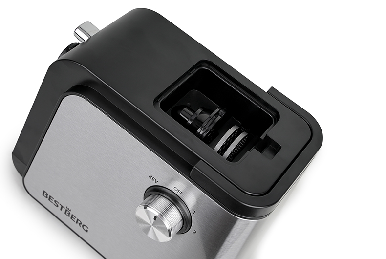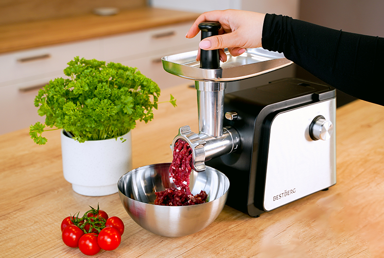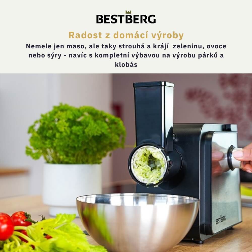 S elektrickým mlýnkem na maso BestBerg BBM-2500 šetříte – energii, čas a taky místo v kuchyni. Poradí si totiž nejen s mletím, ale taky krájením nebo strouháním. Takže nemusíte hromadit příslušenství. Využijete na ho maximum, ať už budete připravovat cokoliv. Díky celokovovým převodům vám navíc vydrží roky.