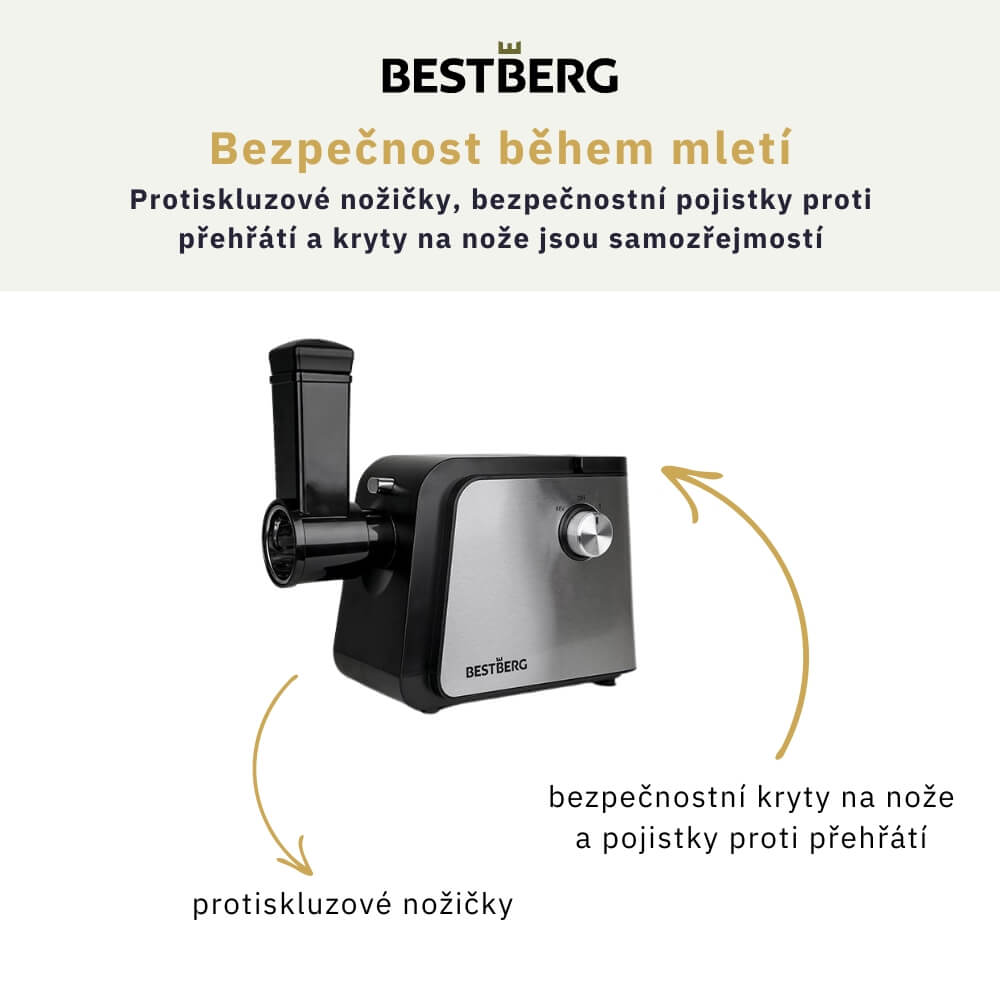 Elektrický mlýnek na maso BestBerg BBM-2500 / 2500 W / černá/stříbrná