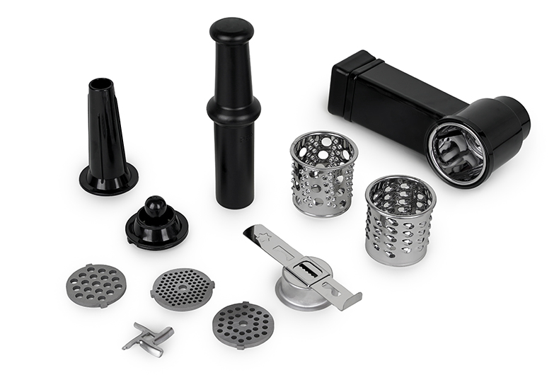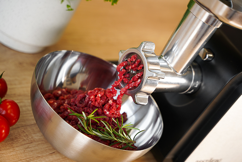 Vybírat můžete nejen z 2 rychlostí, ale taky různě hrubých nástavců. Takže zvládnete všechno od tataráku po burgery – a taky salátů k nim. Ať nemeleme jen o mase.