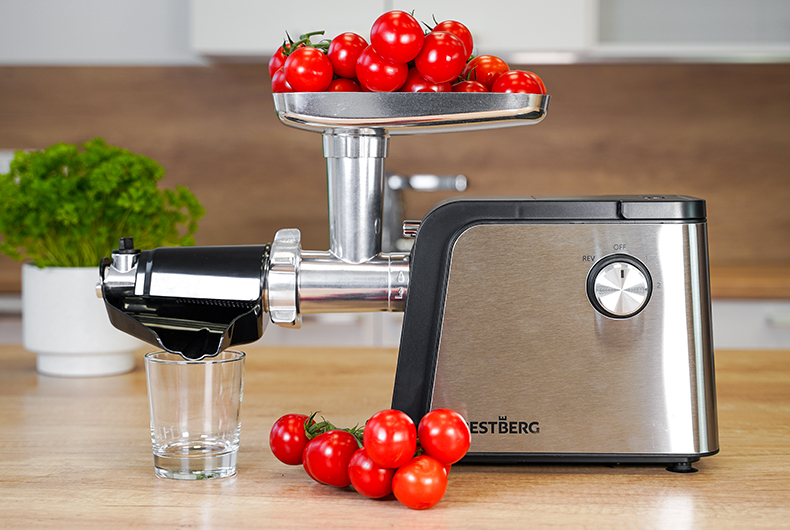 Všechnu práci udělá za vásVy musíte jen zařídit pořádnou úrodu. Lis na rajčata BestBerg BBM-2500TJ si s ní poradí během chvilky. Výkonný mlýnek efektivně oddělí dužinu od slupky a pecek, takže získáte stoprocentně čistou šťávu. Bez aditiv, éček nebo dochucovadel. Kompatibilní s výkonným elektrickým mlýnkem BestBerg BBM-2500.