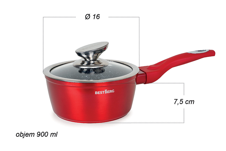 15dílná sada nádobí s mramorovým povrchem BestBerg BBN-1015R / červená