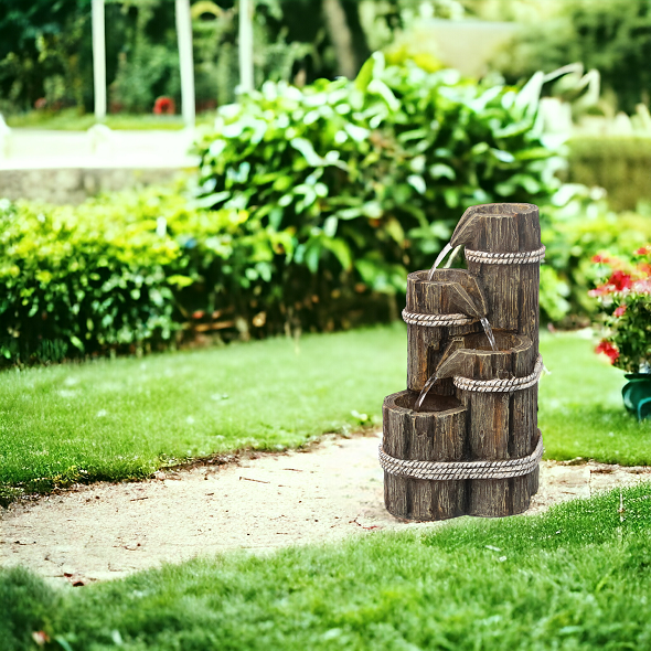 Chcete si ozdobit vaši zahradu, a navíc si při sezení pořádně odpočinout? Pak by vám neměla chybět solární zahradní fontána. Navodí tu správnou relaxační náladu díky příjemným zvukům tekoucí vody a oceníte ji navíc i vizuálně. Motiv dřevěných džbánů v elegantním stylu krásně doplní vaši zahradu. Ve večerních hodinách si také užijete podsvícení LED světýlky.