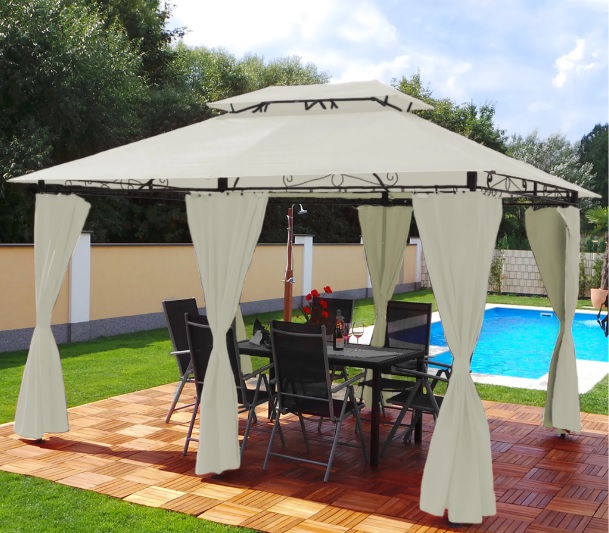 Zahradní altán s LED solárním osvětlením BestBerg BBGG-11 / 300 x 400 x 275 cm / béžová