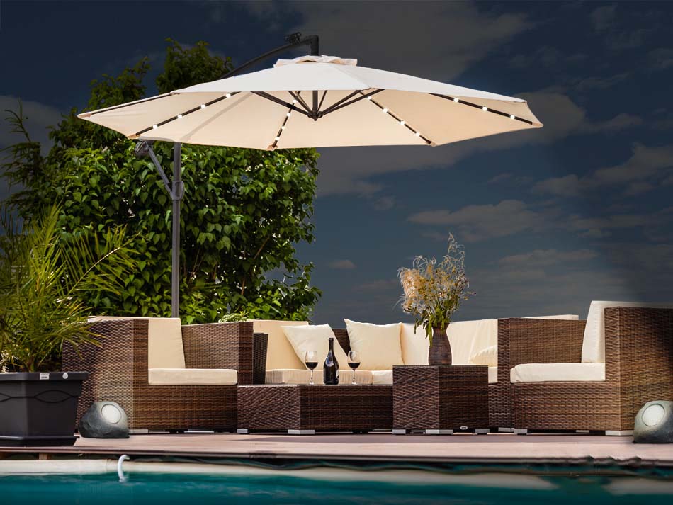TIP: Umístěte slunečník na místo s přímým slunečním svitem. Pro maximální výkon solárního panelu.